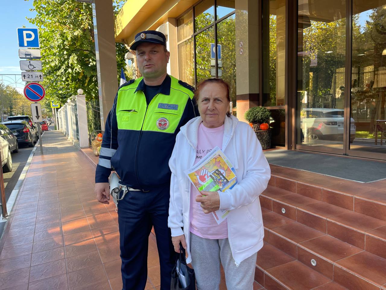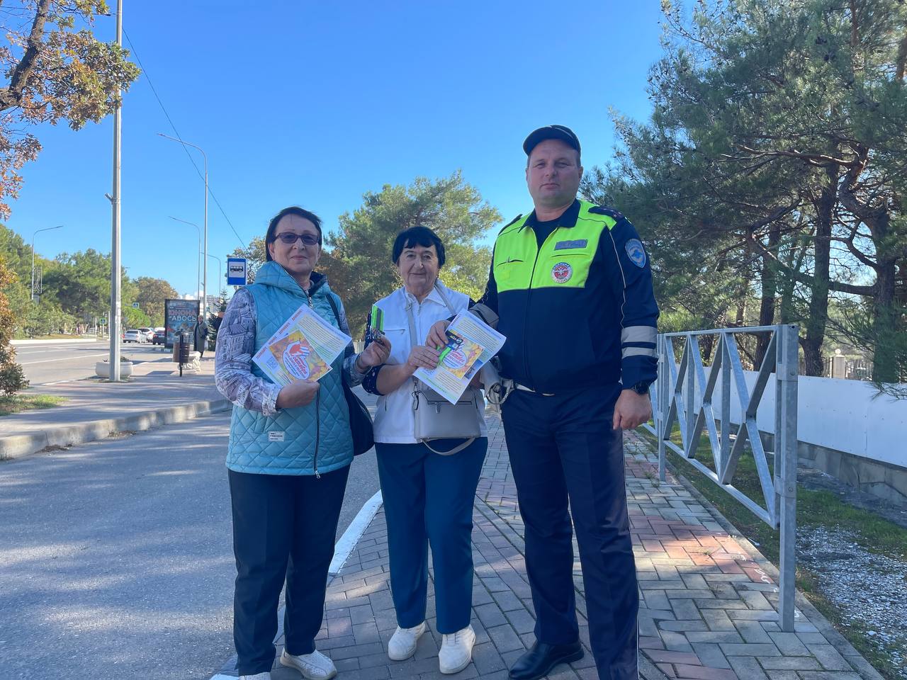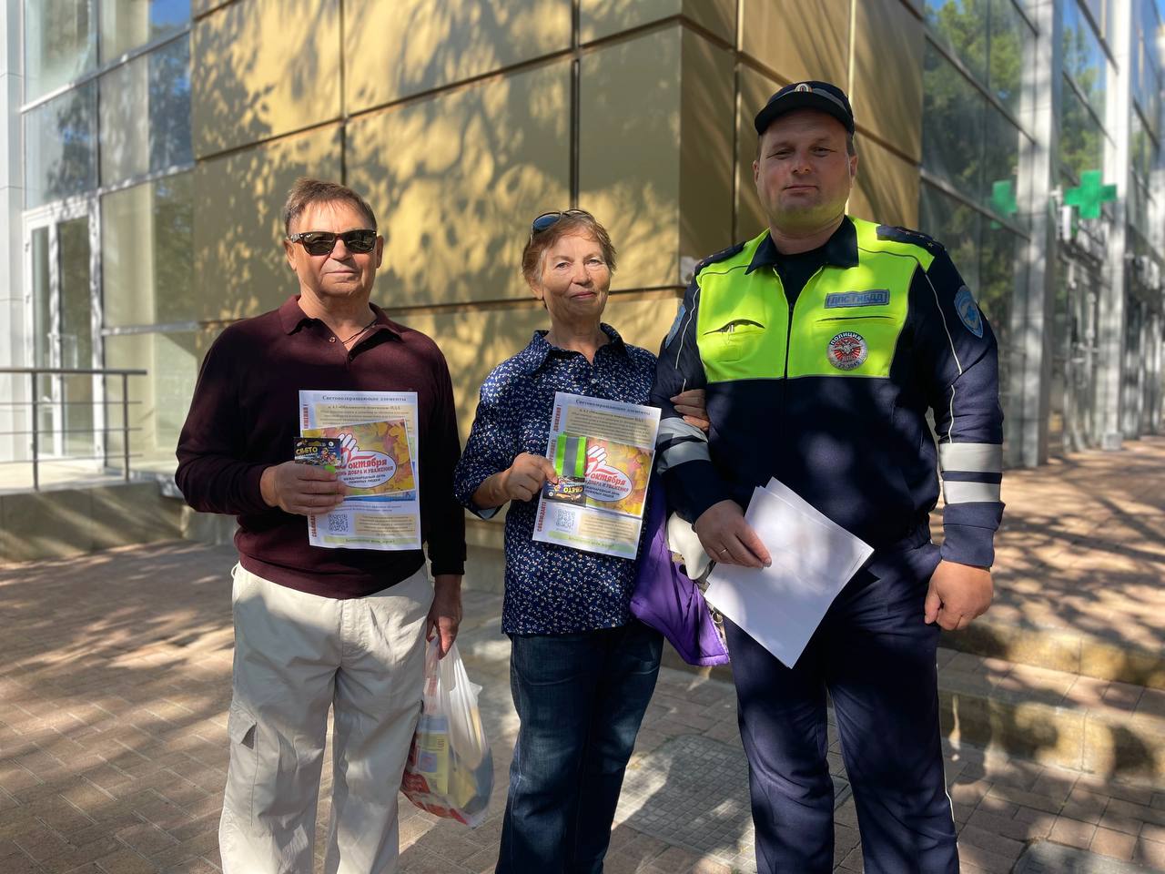 Автоинспекторы напомнили правила перехода проезжей части и вручили пожилым людям листовки с полезной информацией по ПДД и световозвращающие элементы.