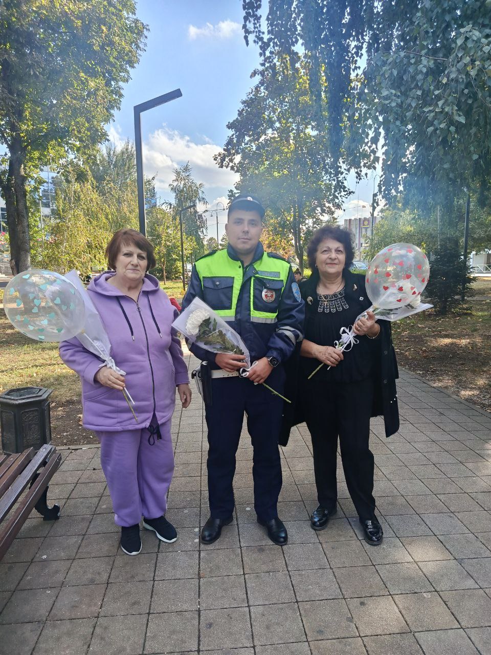 Сотрудники Госавтоинспекции Динского района поздравили старшее поколение, напомнив о безопасности на дорогах