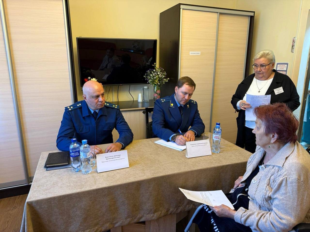 Сегодня, 2 октября 2025 года, заместитель прокурора края Александр Хрусталев провел выездной прием по вопросам соблюдения социальных прав граждан в Государственном казенном учреждении социального обслуживания края «Тихорецком доме-интернате для престарелых и инвалидов».