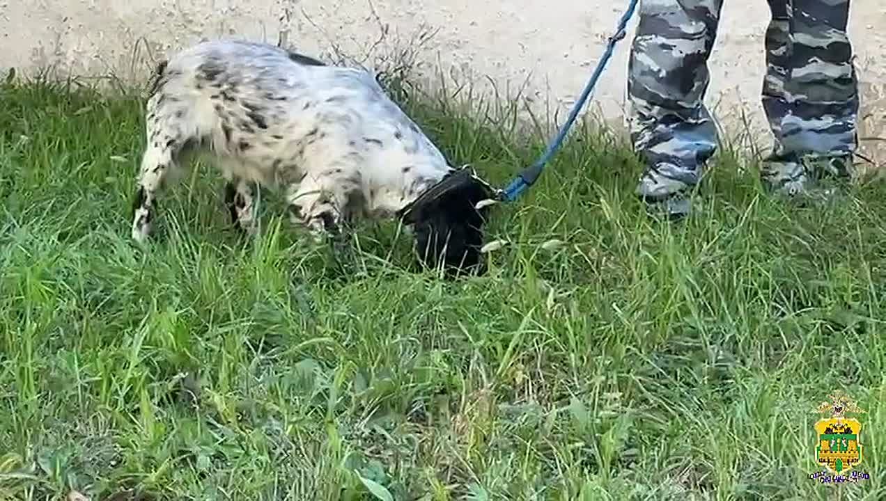 На кадрах - занятие старшего инспектора - кинолога Управления МВД России по городу Новороссийску майора полиции Александра Гудкова со спаниелем Янка, которая специализируется на поисках запрещенных веществ.