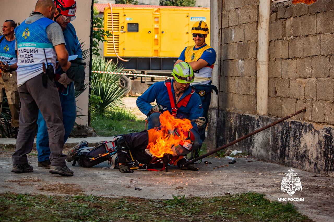 Сегодня на чемпионате по многоборью спасателей МЧС России прошла одна из самых захватывающих дистанций — поисково-спасательные работы в условиях ЧС техногенного характера.