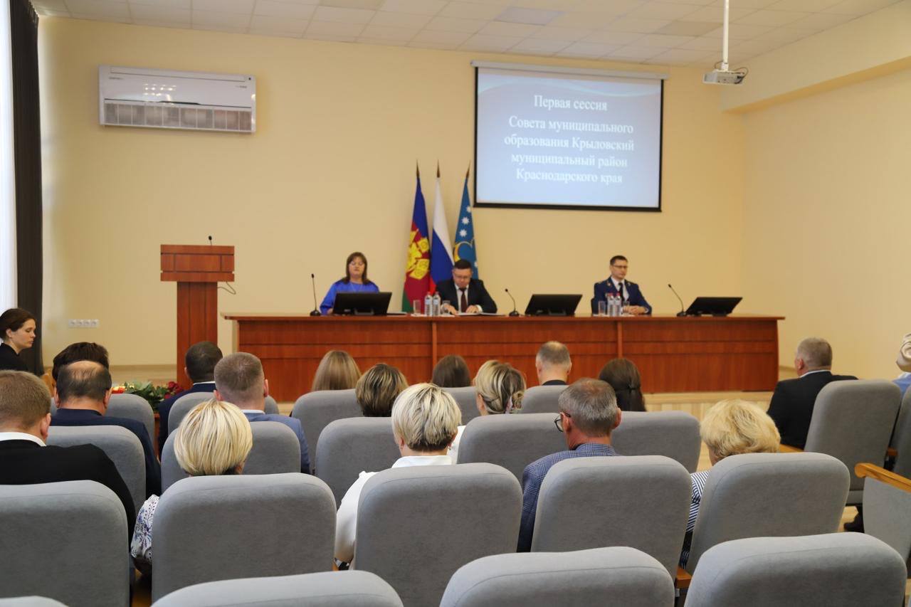 В ходе заседания рассмотрены результаты выборов депутатов Совета муниципального образования Крыловский район, избраны и утверждены председатель, его заместитель и секретарь представительного органа, образованы постоянные комиссии.