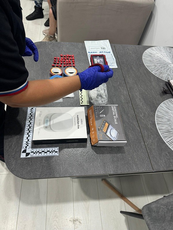 В ходе обыска по месту временного проживания задержанных были обнаружены и изъяты весы, упаковочный материал и прозрачный полиэтиленовый пакет с порошкообразным кристаллическим веществом белого цвета. Согласно заключению эксперта, изъятые вещества являются наркотическим средством «метадон» общей массой более 500 граммов.