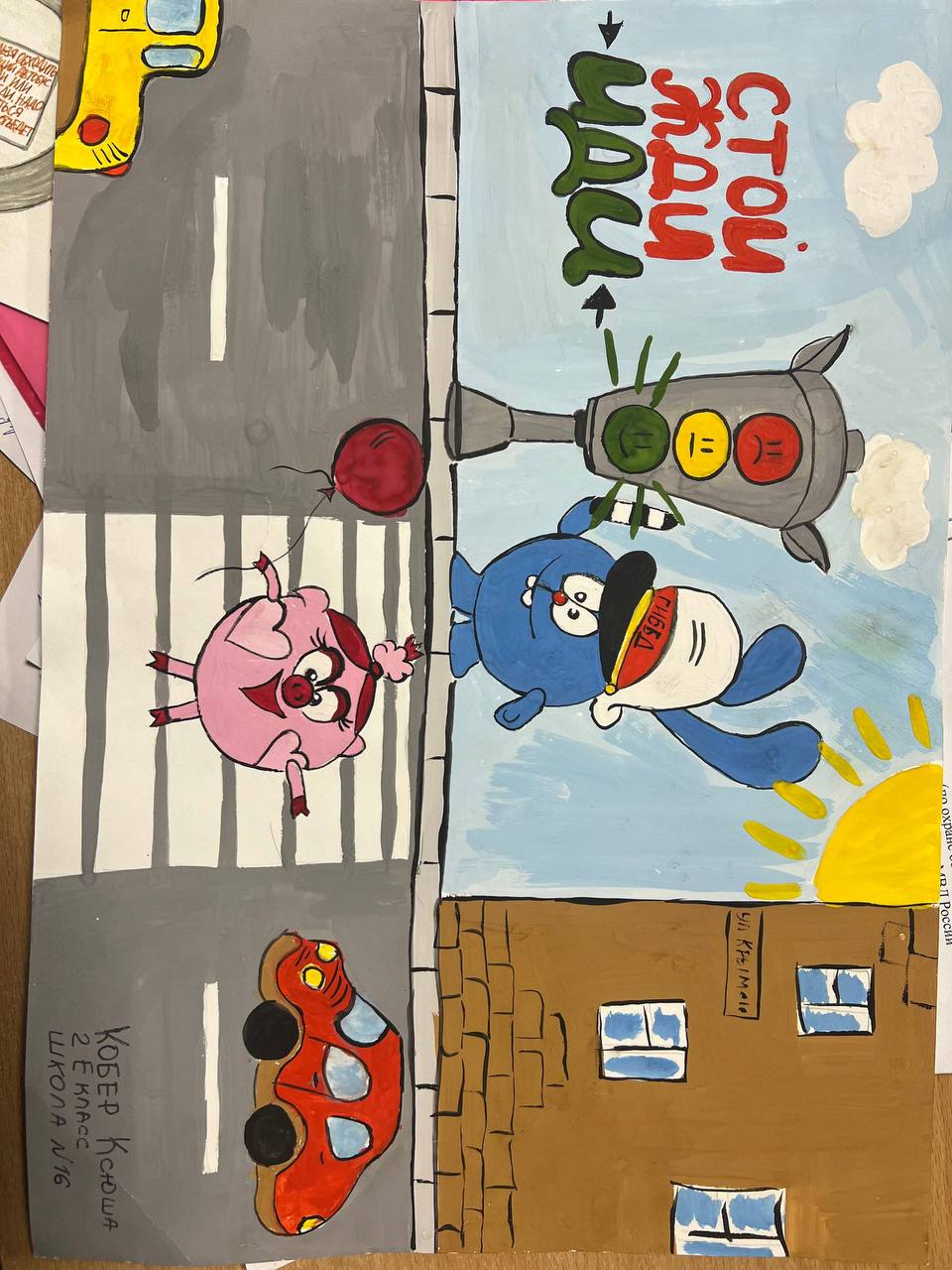В знак внимания и признательности за проведенный урок школьники подготовили и вручили инспектору Госавтоинспекции яркие тематические рисунки.