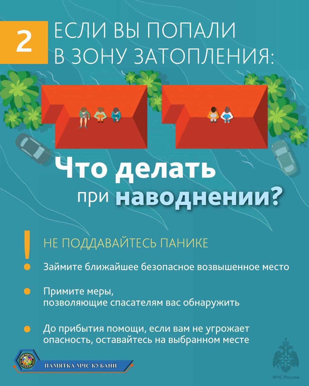Следуй указаниям местных властей и спасателей. Не пытайся пересекать затопленные участки самостоятельно.