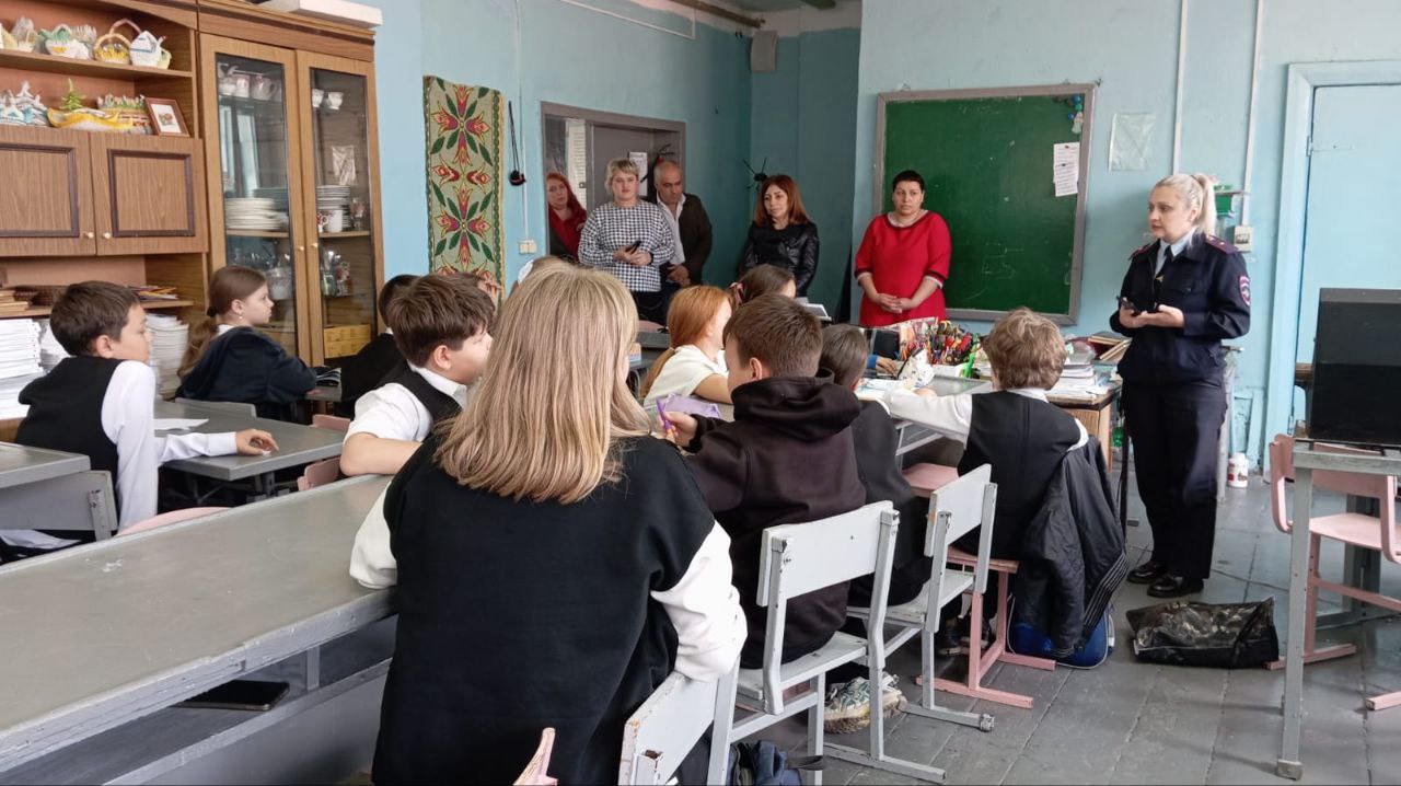 Госавтоинспекторы напомнили школьникам о правилах перехода проезжей части, значении дорожных знаков и необходимости использования световозвращающих элементов в тёмное время суток.