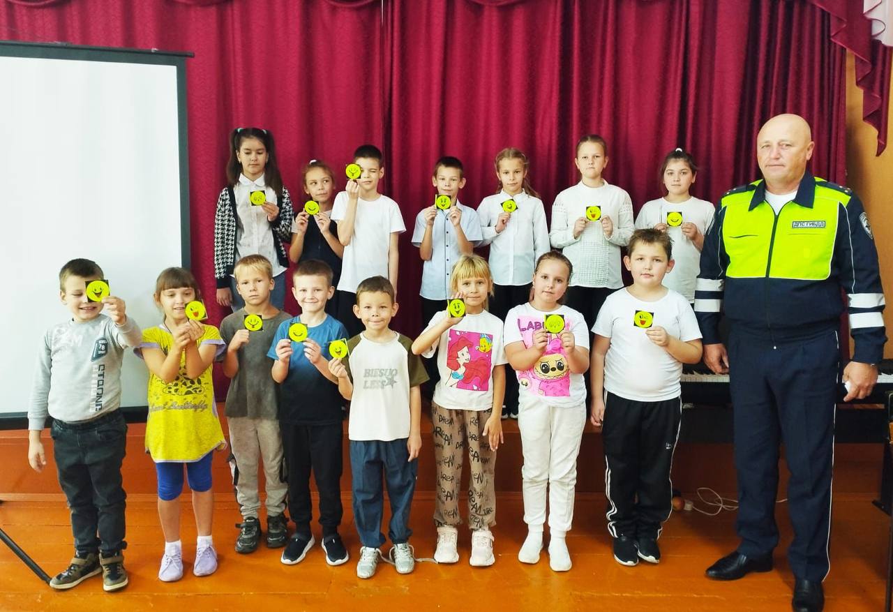 Дорожные полицейские рассказали школьникам о том, что осенью и зимой темнеет рано, поэтому при движении в вечернее время и пасмурную погоду пешеходам рекомендуется иметь на одежде световозвращатели.