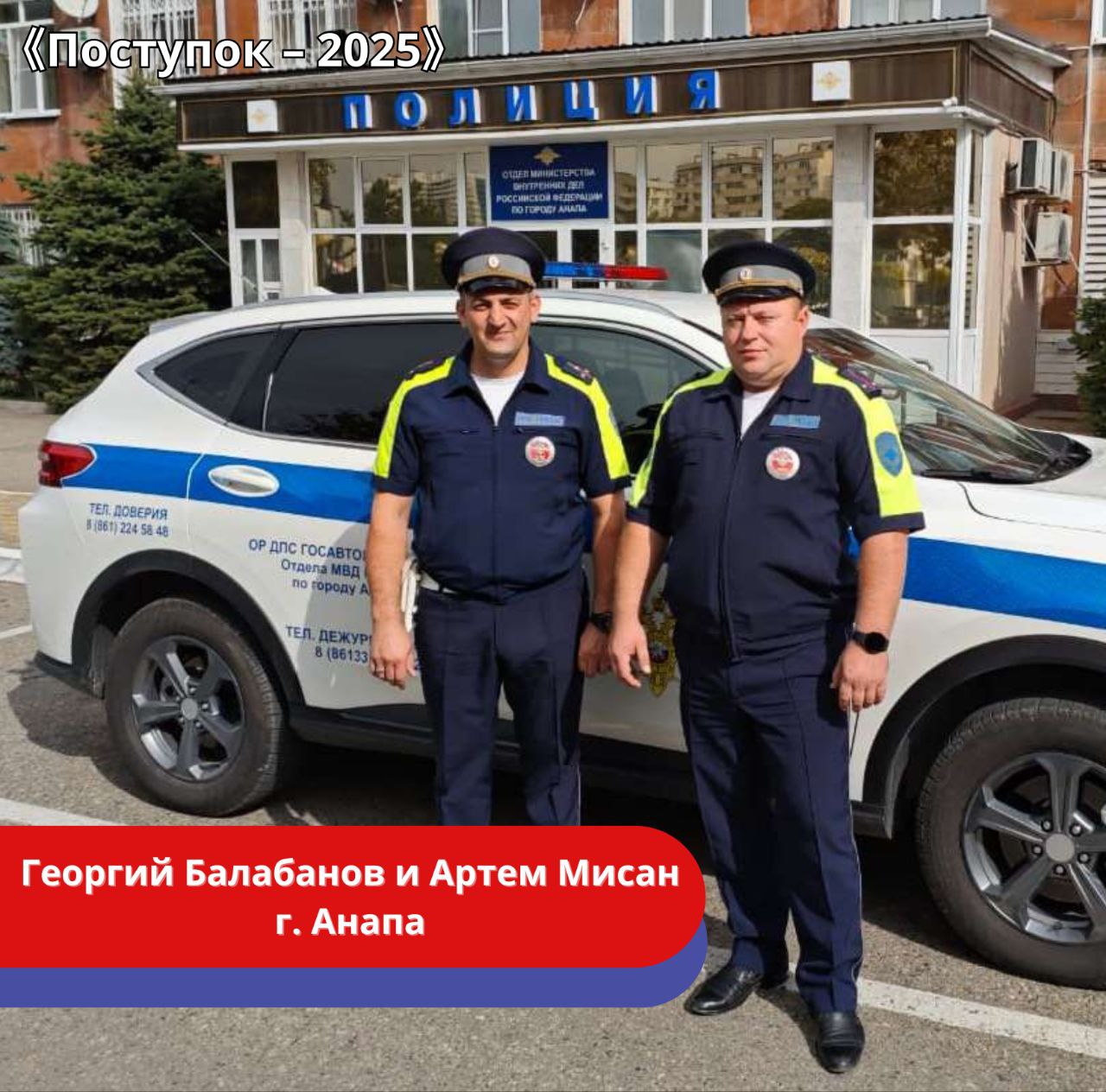 Номинанты премии "Поступок" - госавтоинспекторы ОМВД России по городу Анапе Артем Мисан и Георгий Балабанов.