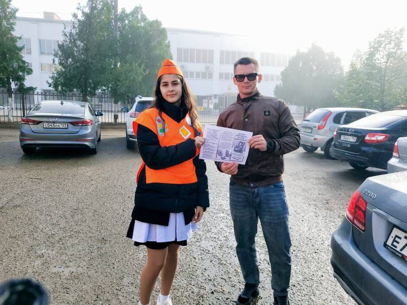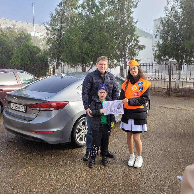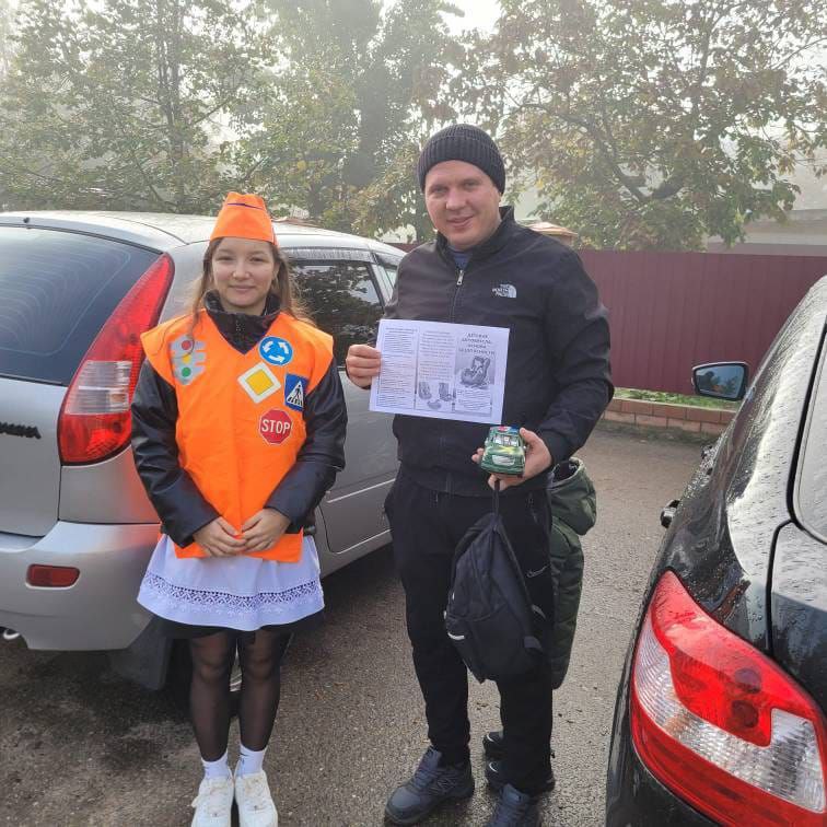 Юные инспекторы движения вместе с сотрудниками Госавтоинспекции провели акцию «Автокресло — детям!» и поздравили мужчин-водителей с Международным днём отца.