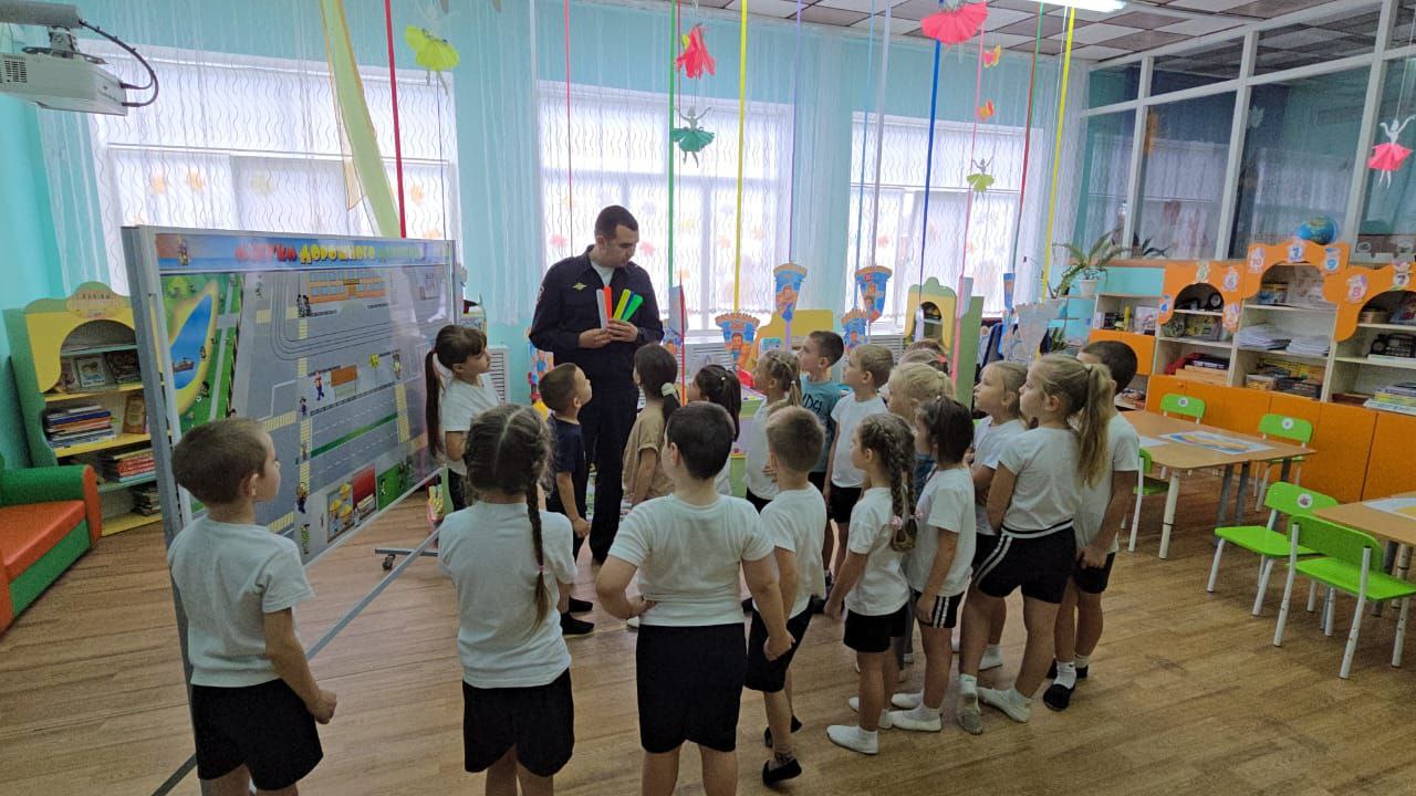 В детском саду № 9 станицы Старовеличковской автоинспектор Калининского района провёл полезную акцию — «Засветись»!