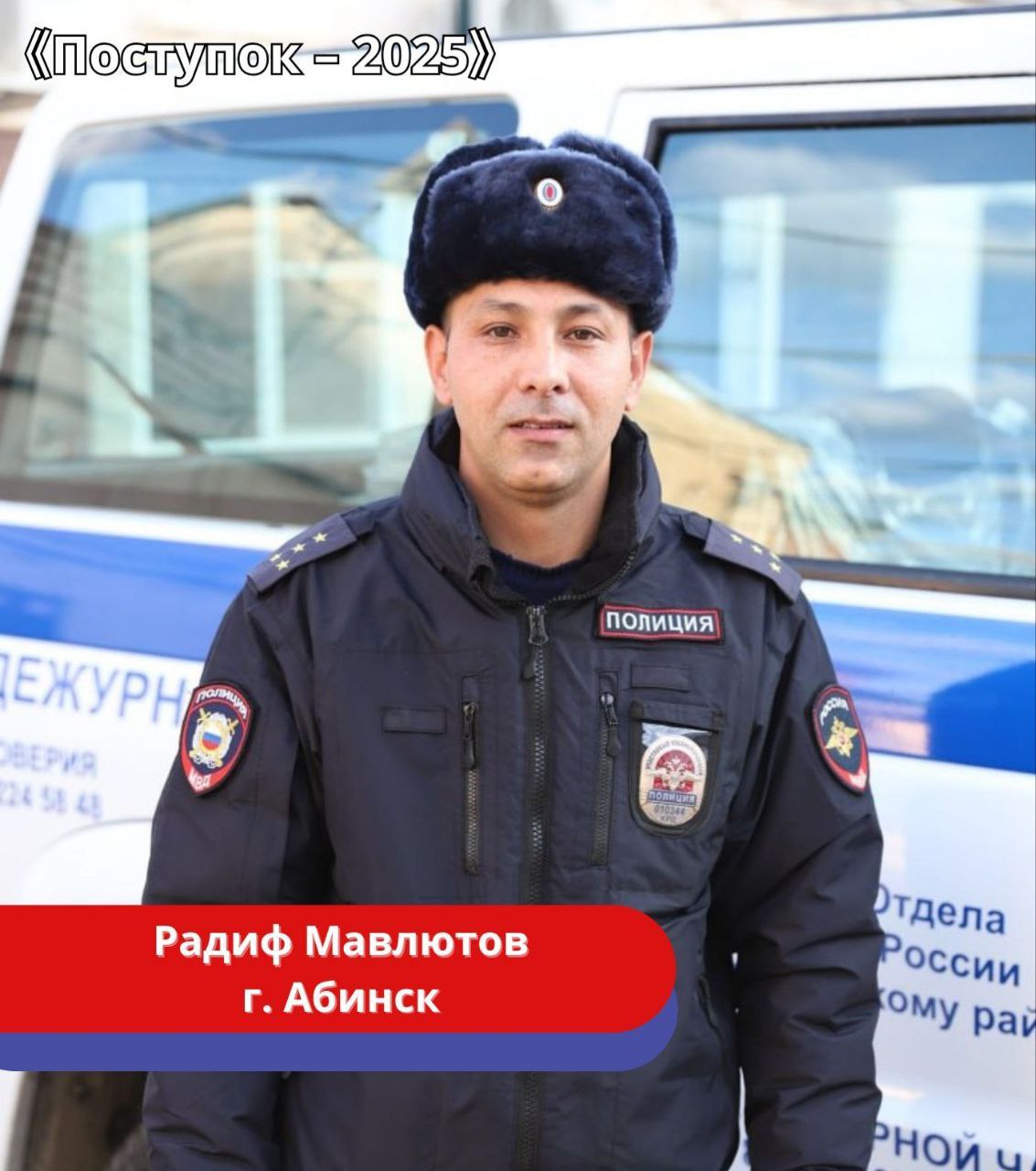 Победителем стал участковый ОМВД России по Абинскому району Радиф Мавлютов, который спас женщину и ее домашних животных из горящего дома.
