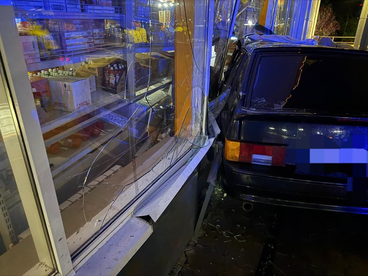 Сегодня около 04:20 18-летний водитель «Лада 211440» не справился с управлением, съехал с дороги и врезался в витрину продуктового магазина.
