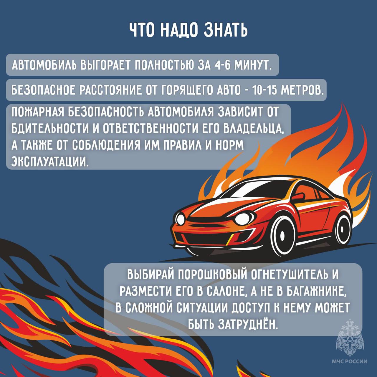 МЧС России напоминает: пожарная безопасность машины — это не только чистый кузов, но, в первую очередь, исправность всех её систем!