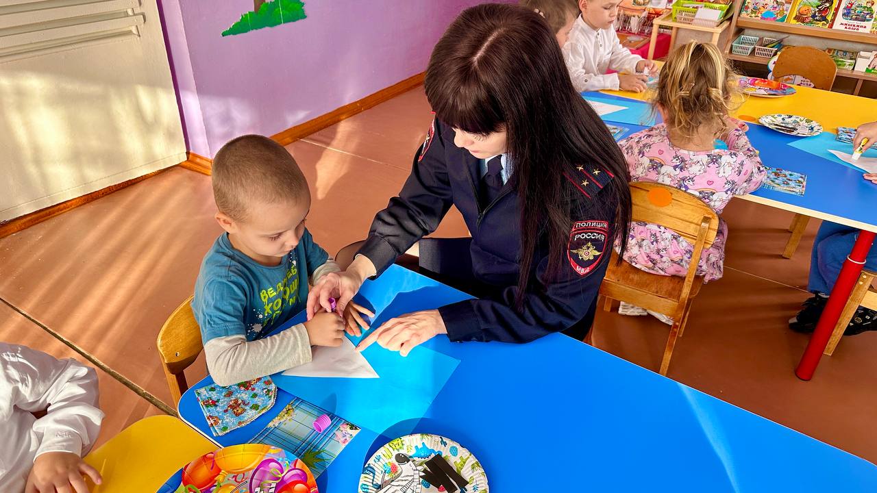 Сотрудники Госавтоинспекции по Лабинскому району провели для дошколят мастер-класс по изготовлению аппликации «Пешеходный переход»