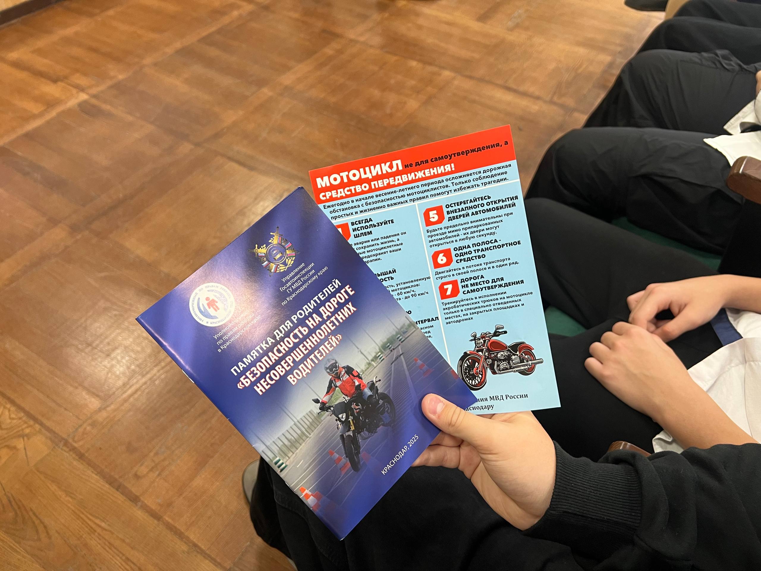 Сотрудники Госавтоинспекции г.Краснодара провели занятие «Мотоцикл - не для самоутверждения, а средство передвижения при соблюдении Правил дорожного движения» в МАОУ СОШ №73