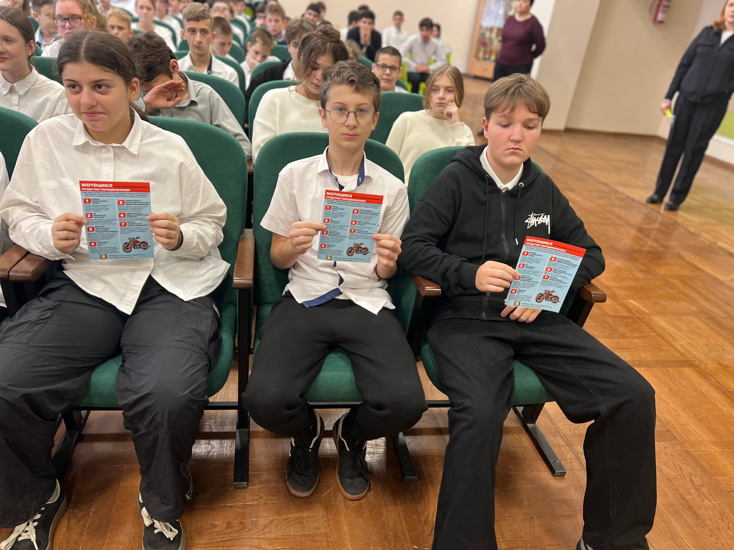 В ходе мероприятия ребятам продемонстрировали видеоролики с примерами ДТП, связанных с мотоциклистами. Автоинспекторы разъяснили подросткам последствия нарушений ПДД: административную и, при наличии состава преступления, уголовную ответственность.