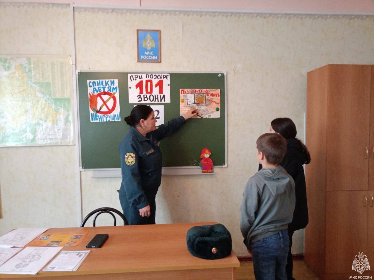 В ходе мероприятия напомнили детям номера экстренных служб и вручила каждому памятку школьника и раскраски на противопожарную тему.