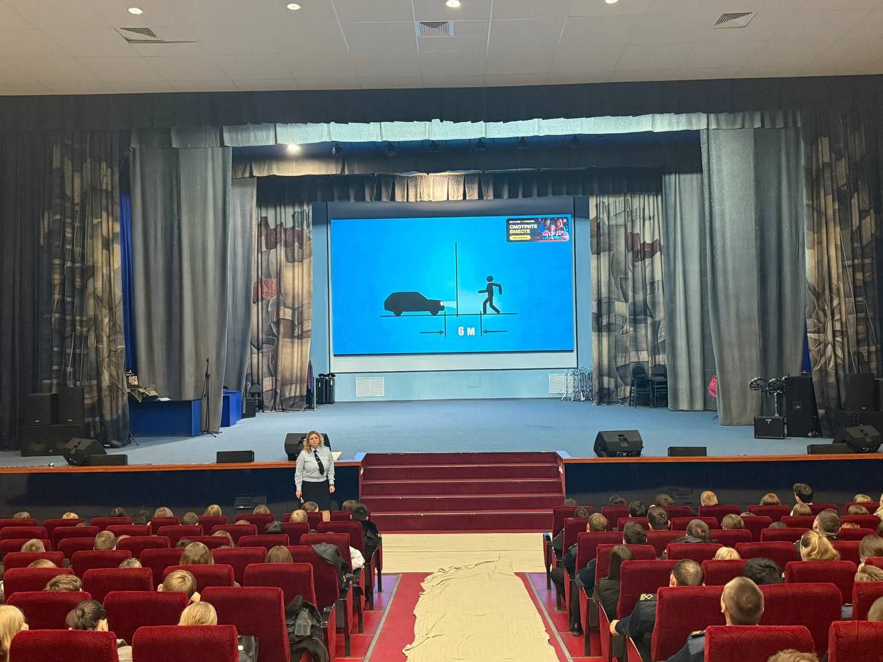На большом экране, в кадрах дорожно-транспортных происшествий, зрители видели улицы и трассы родного города, что вызывало бурные эмоции.