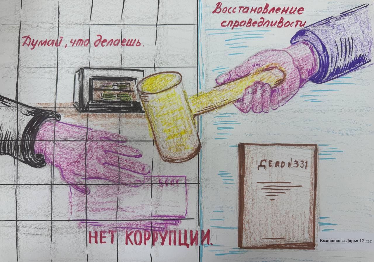 Несмотря на юный возраст некоторых участников, в работах они выразили своё отношение к проблеме противодействия и борьбы с коррупцией в нашем обществе. В своих рисунках ребята продемонстрировали свою духовную нравственность и негативное отношение к любым коррупционным проявлениям.