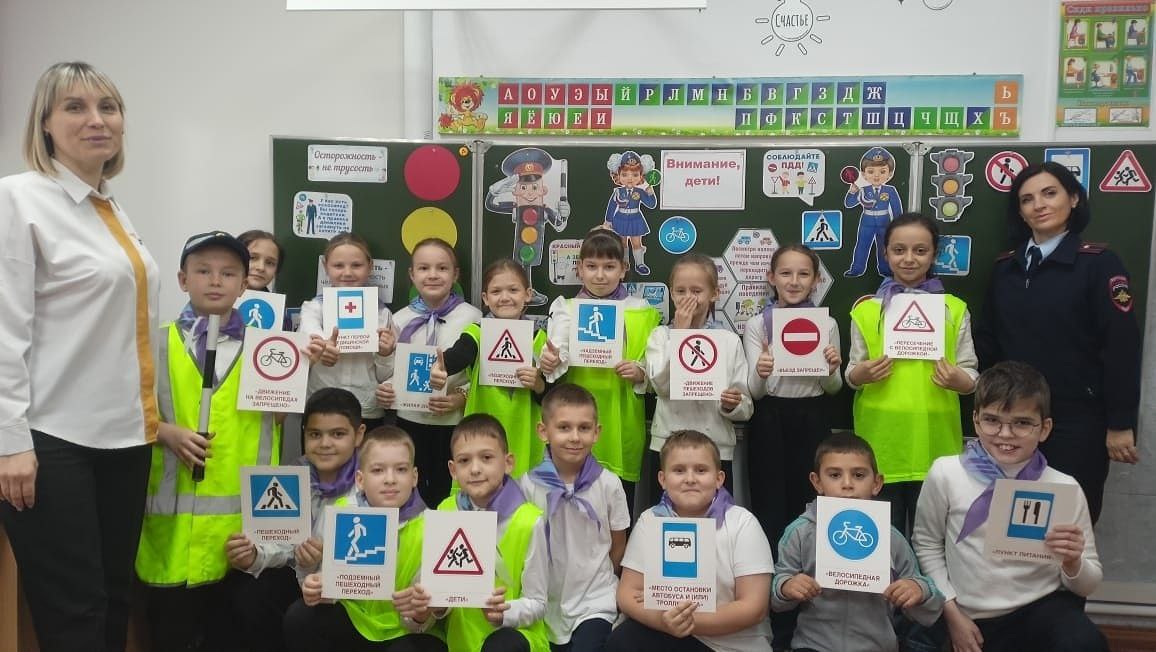Сотрудники Госавтоинспекции Апшеронского района провели для третьеклассников школы №16 ст.Кубанской мероприятие «В стране дорожных знаков»