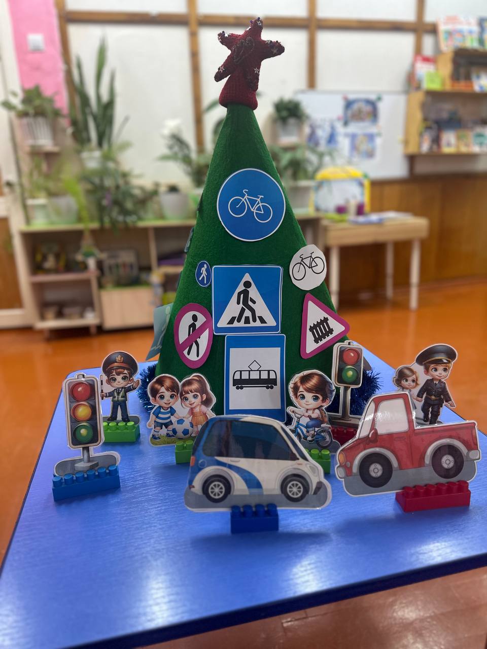 В завершение мероприятия ребята украсили елку тематическими игрушками в виде дорожных знаков, сделав ее своеобразным новогодним символом безопасности дорожного движения.