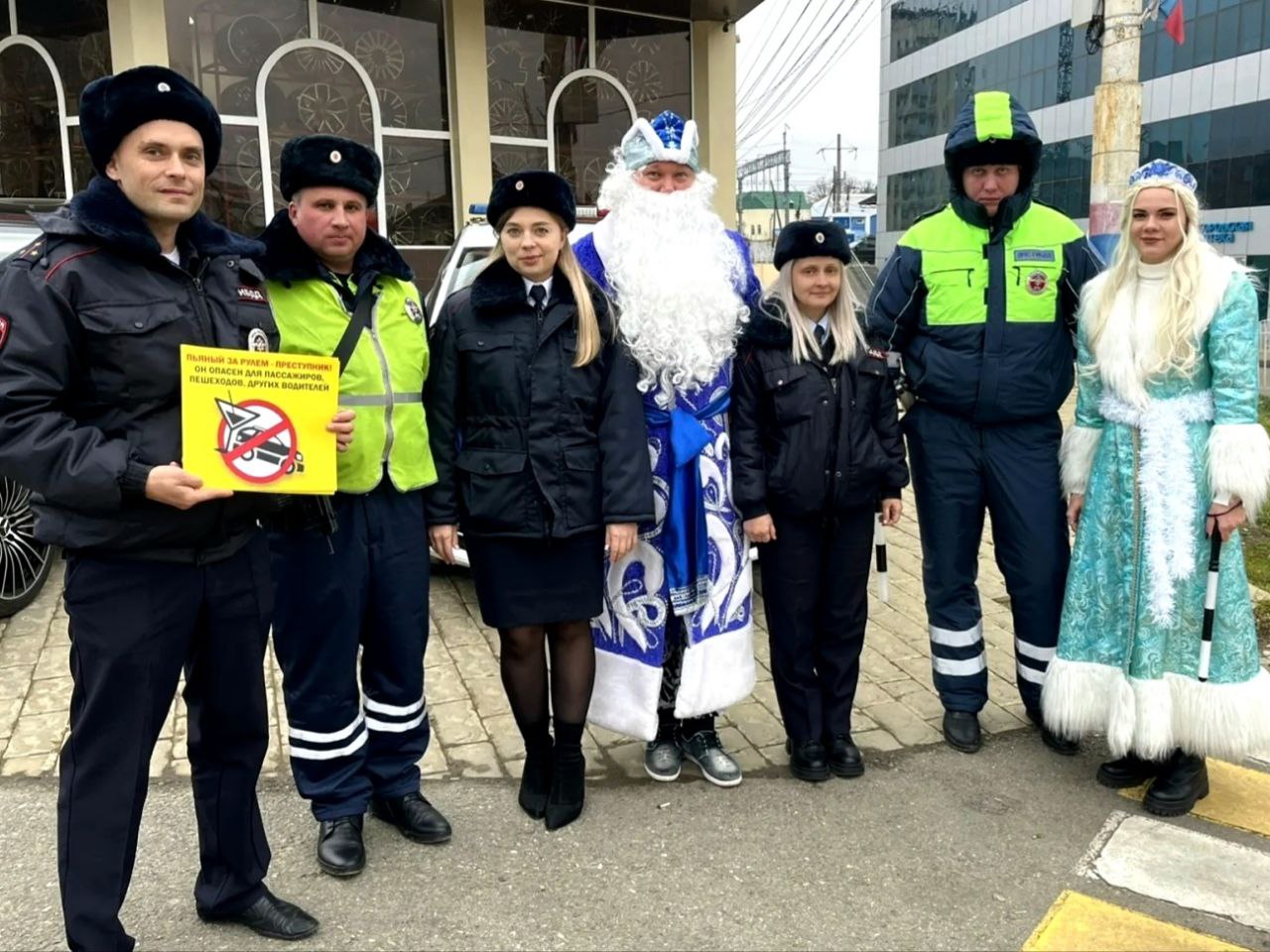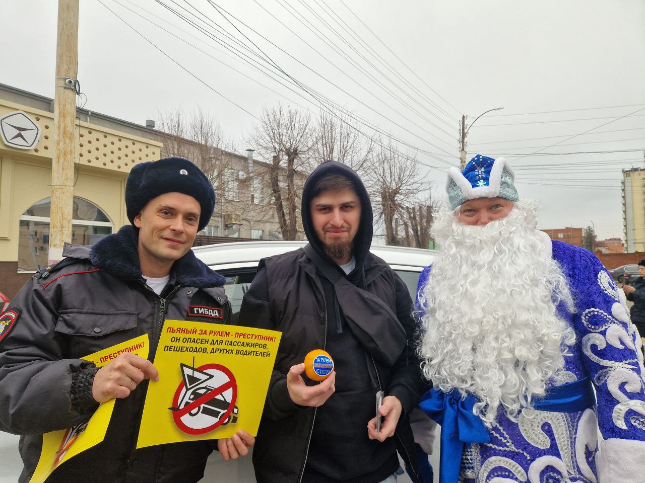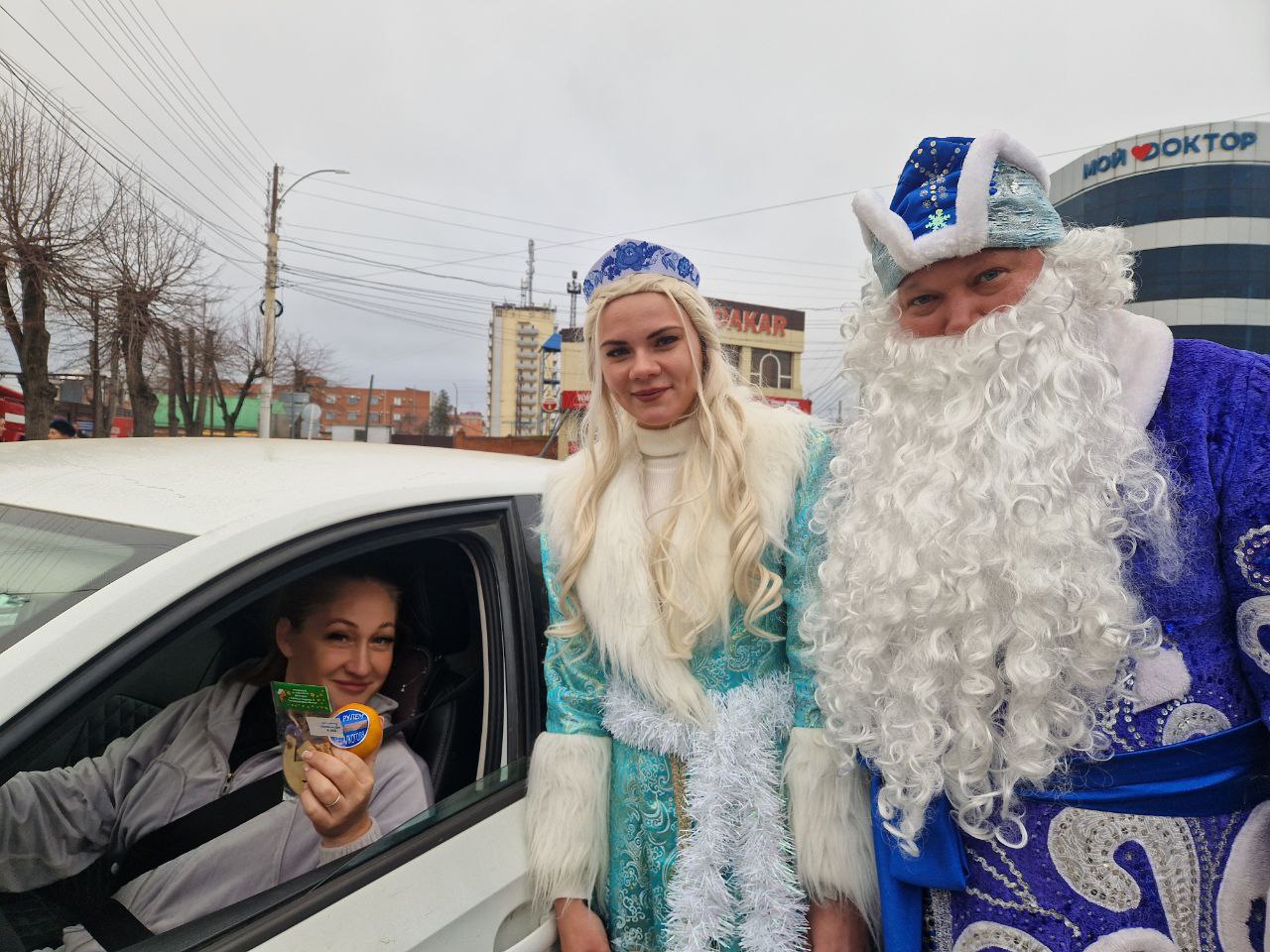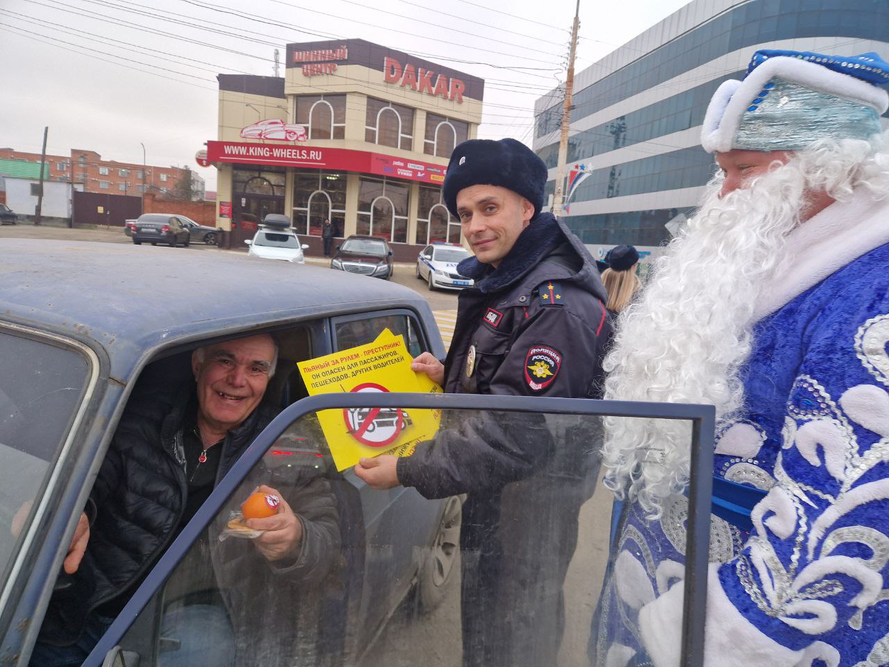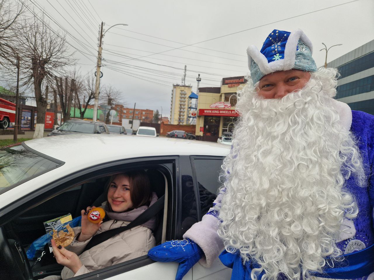 Дед Мороз и Снегурочка, в свою очередь, создавали праздничную атмосферу и дарили водителям положительные эмоции. Мандарины, как символ Нового года, и тематические сувениры напоминали о зимних праздниках и необходимости быть внимательными на дорогах.