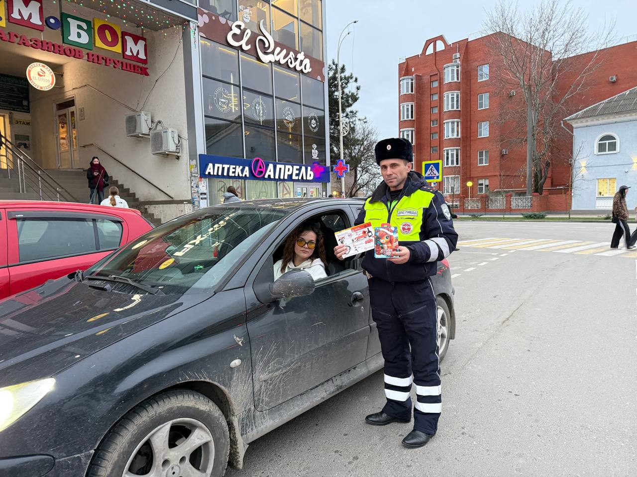Всем участникам акции вручили памятки и сладкие подарки к Новому году.