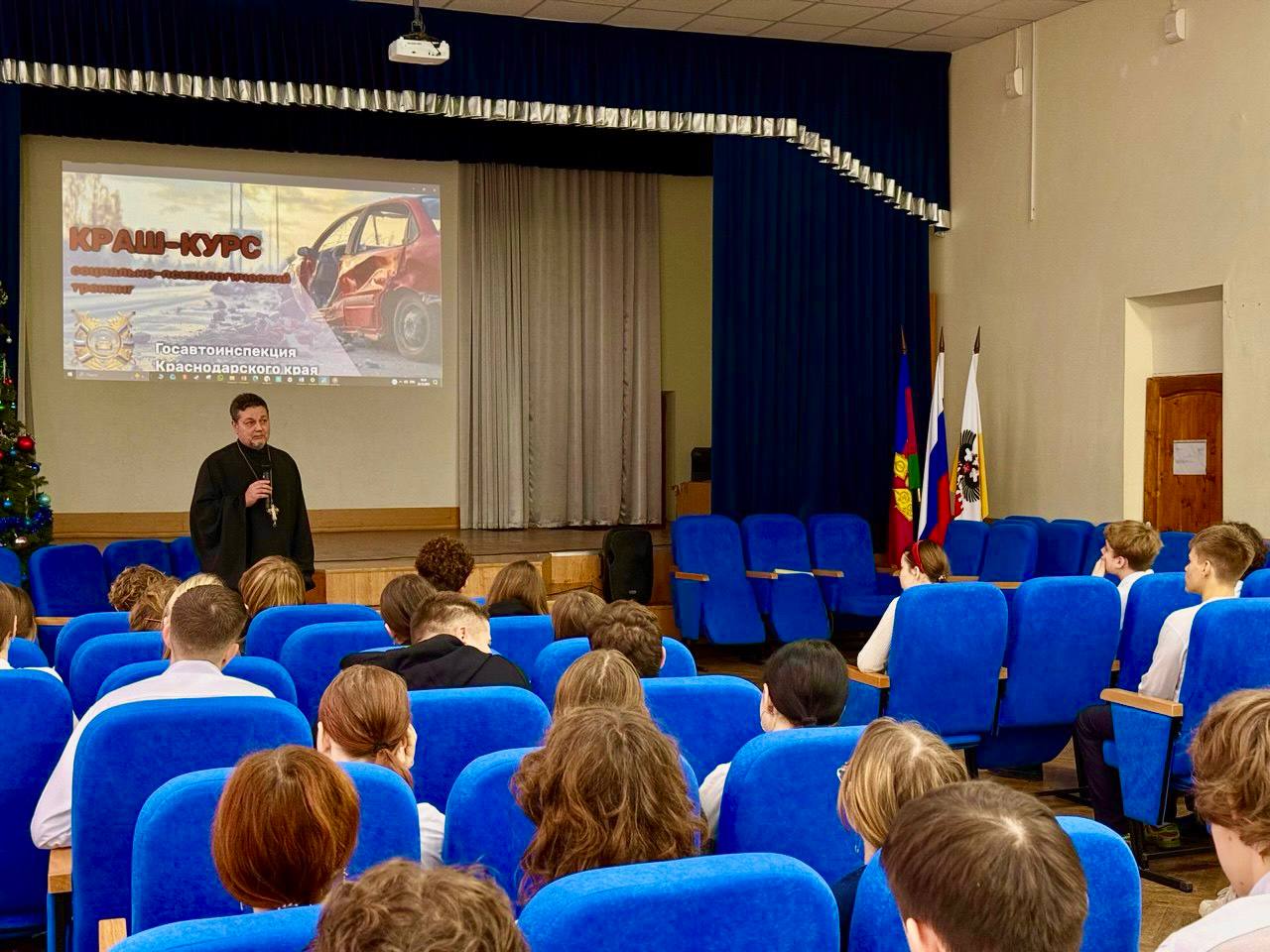 Сотрудники Управления Госавтоинспекции по Краснодарскому краю совместно с представителями духовенства провели социально-психологический тренинг «Краш-курс» для учащихся гимназии №40 г.Краснодара