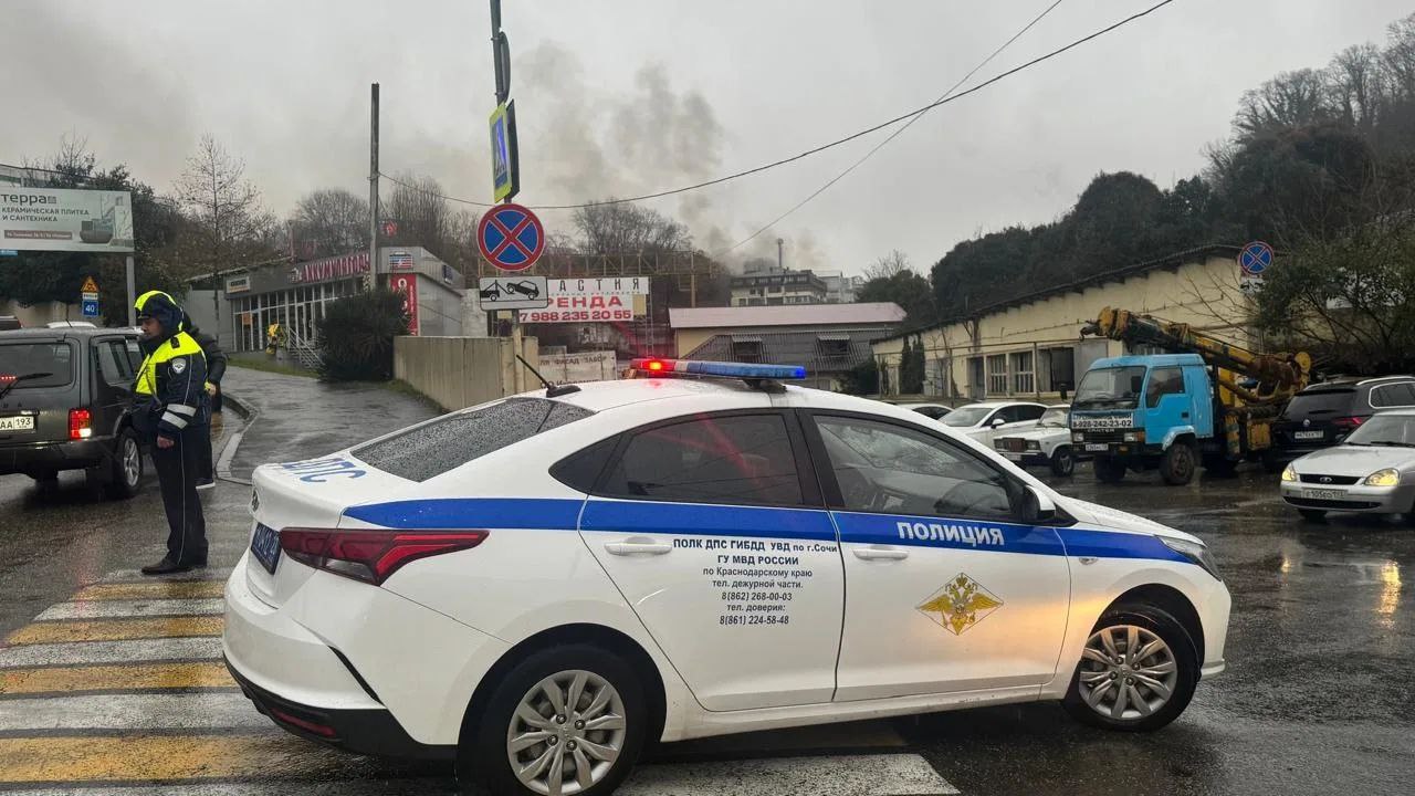 Полицейские работают на месте крупного пожара в Сочи