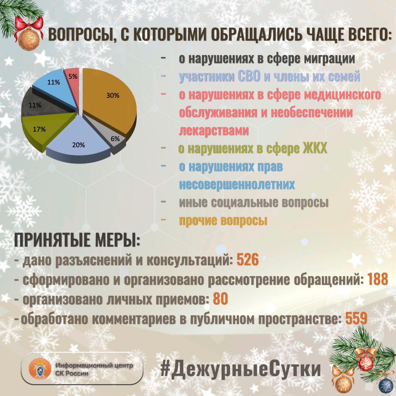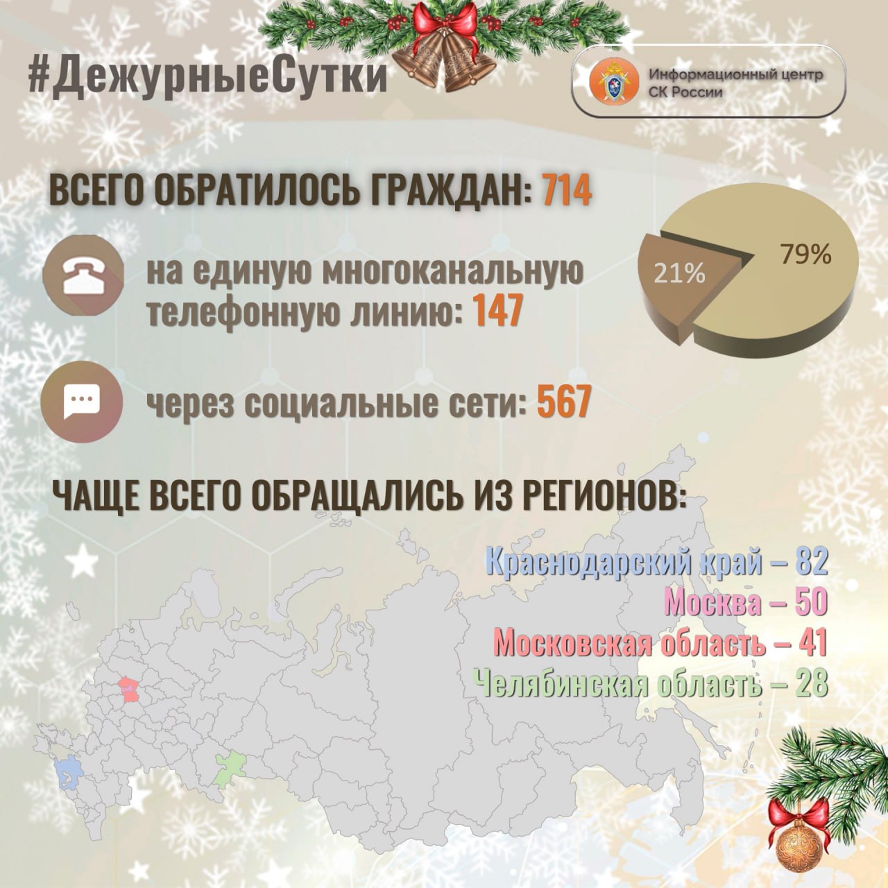 В Информационный центр СК России за прошедшие сутки всего обратилось граждан: 7 1 4