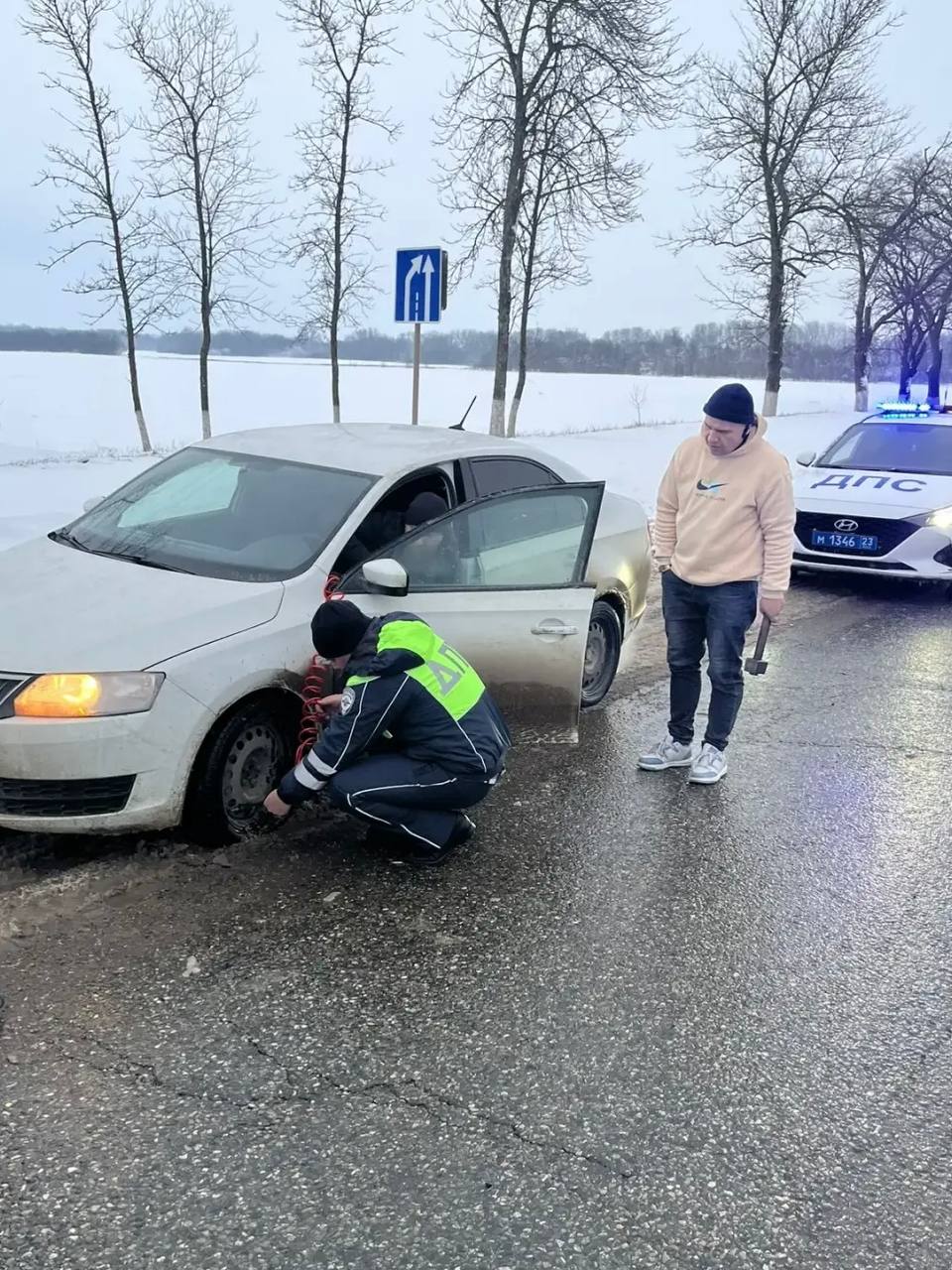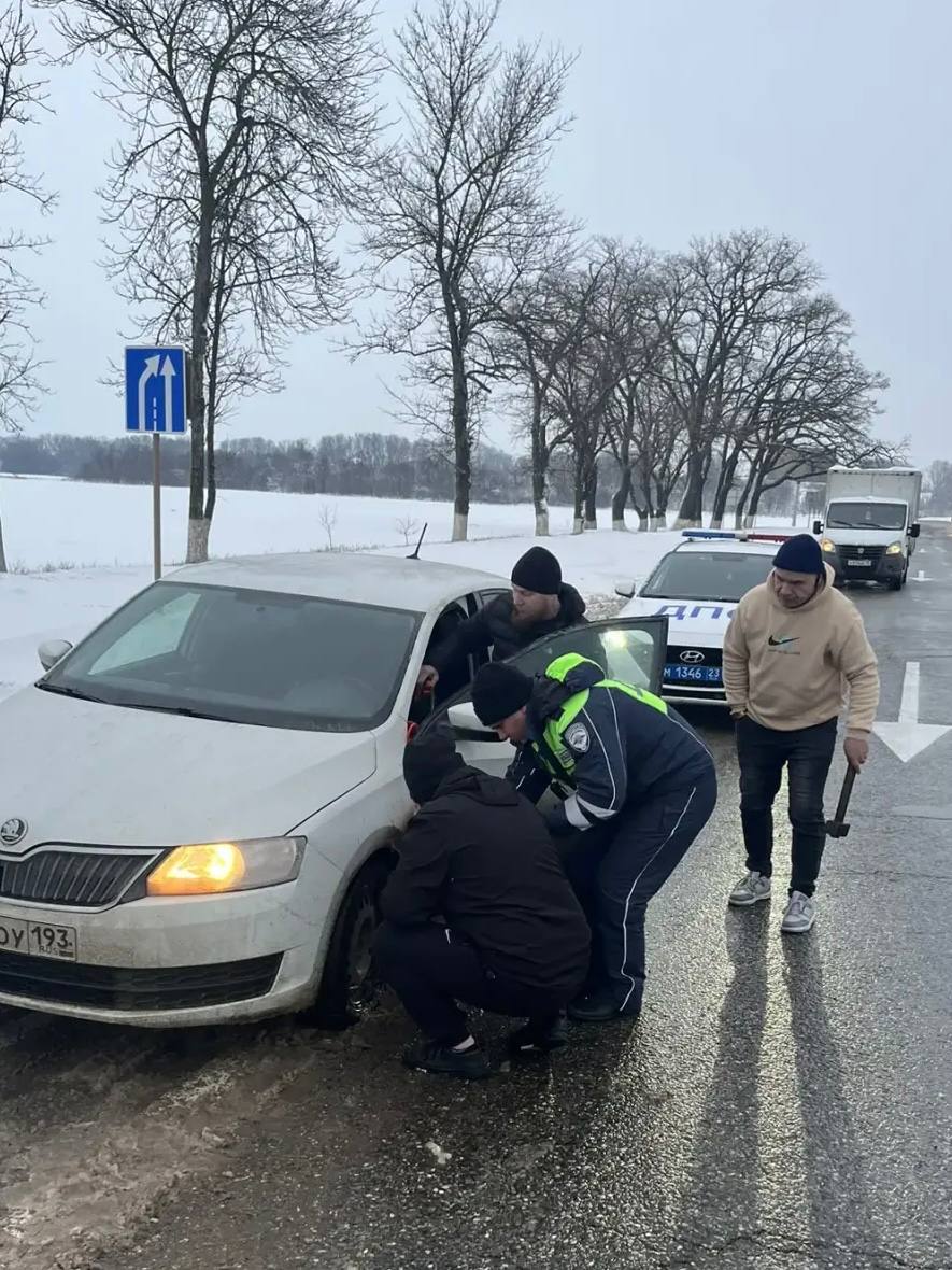 Сотрудники Госавтоинспекции Абинского района не остались равнодушными и пришли на помощь водителю, который оказался в затруднительной ситуации на обочине дороги.