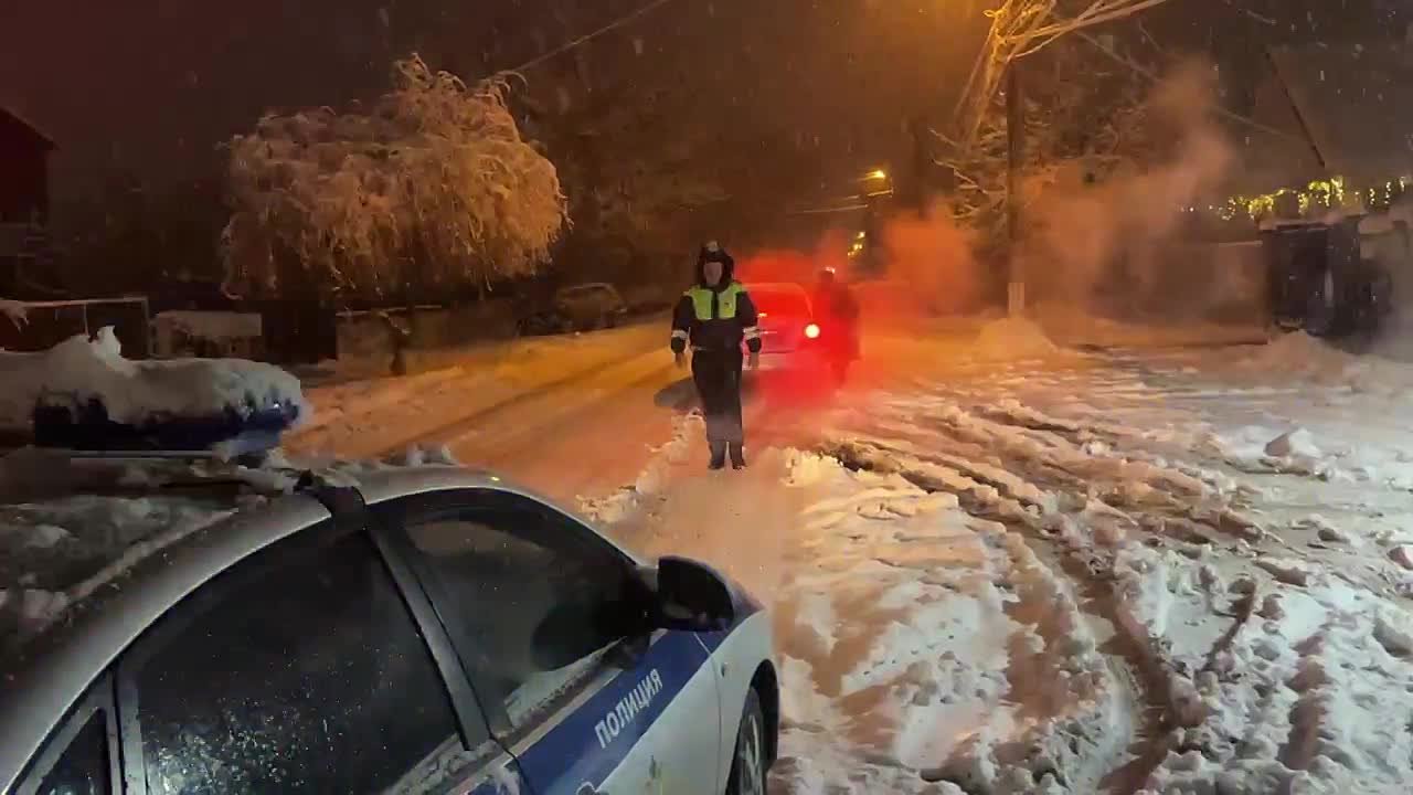 В городе Славянск-на-Кубани а также на федеральных автодорогах района в условиях непогоды сотрудники ДПС, находящиеся на маршрутах патрулирования, круглосуточно оказывают помощь водителям транспортных средств, оказавшихся в снежном плену.