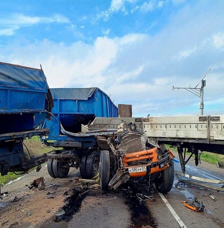 По версии следствия, 39-летний житель Адыгеи за рулем «Камаза» выехал на встречную полосу в неположенном месте, где столкнулся с двумя большегрузами.