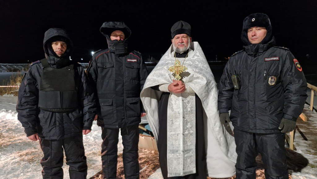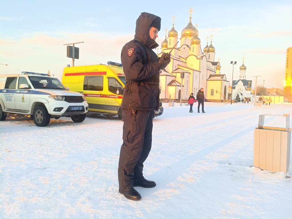 В Крещенский сочельник и сегодня сотрудники полиции несут службу по обеспечению общественной безопасности в храмах и вблизи специально оборудованных мест для купаний, заботятся о вашем покое на праздничных богослужениях! Они работают во взаимодействии с представителями казачества и Росгвардии.