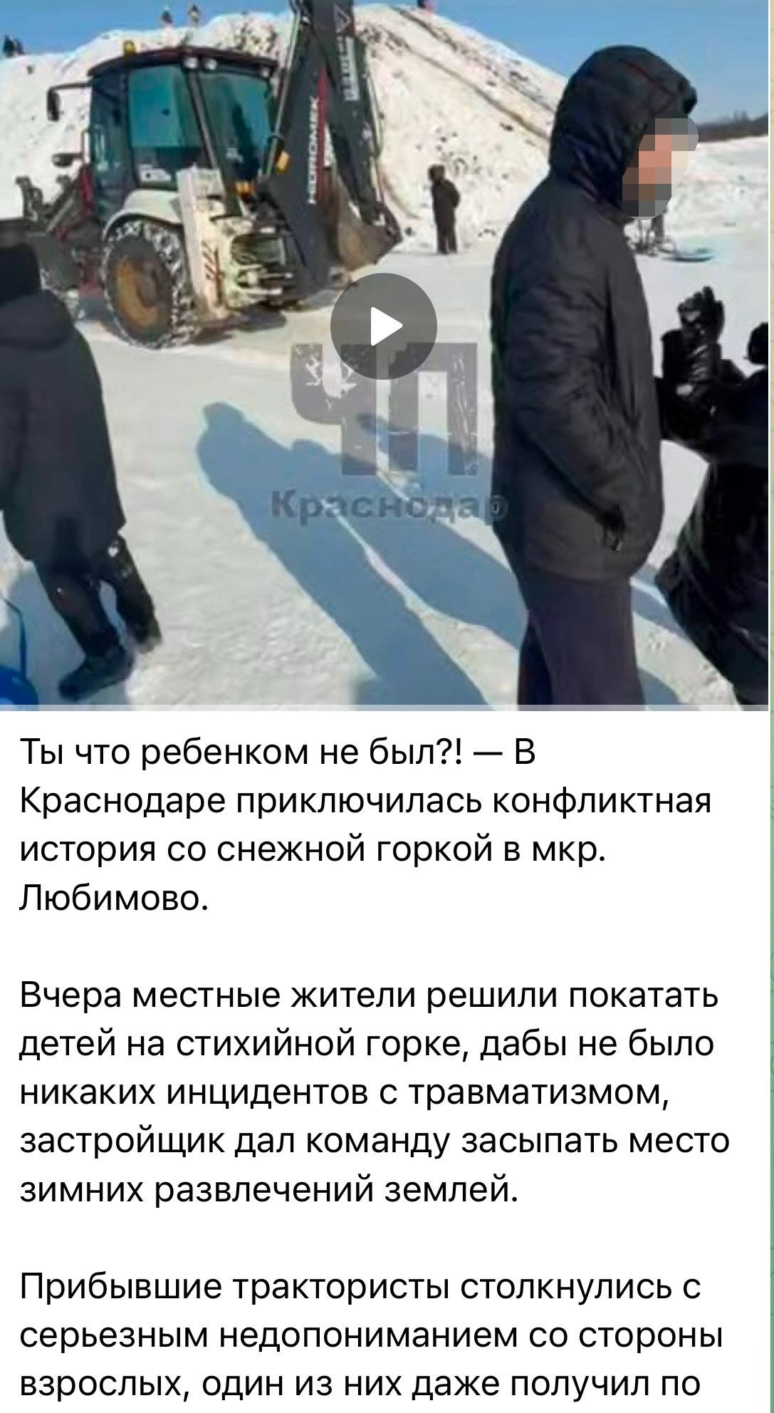 Краснодарские полицейские разбираются в конфликте граждан из-за заснеженной горки в микрорайоне Любимово