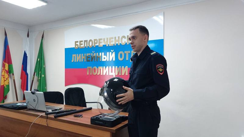 Программа мероприятия была насыщенной. В начале для гостей показали документальный фильм об истории и задачах Белореченского ЛОП. Затем студентам продемонстрировали специальные технические средства, которые полицейские используют в ежедневной работе. Каждый желающий смог примерить бронежилет и защитный шлем, чтобы на себе ощутить экипировку стража порядка.