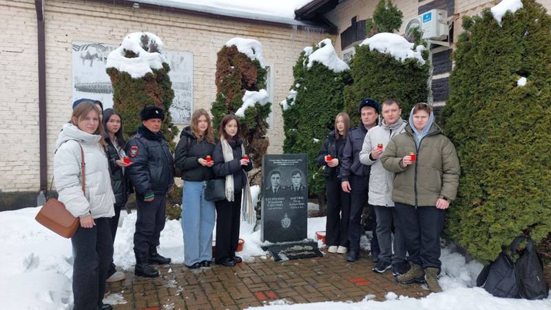 В завершение сотрудники полиции и студенты зажгли свечи и почтили память сотрудников, погибших при исполнении служебного долга минутой молчания.