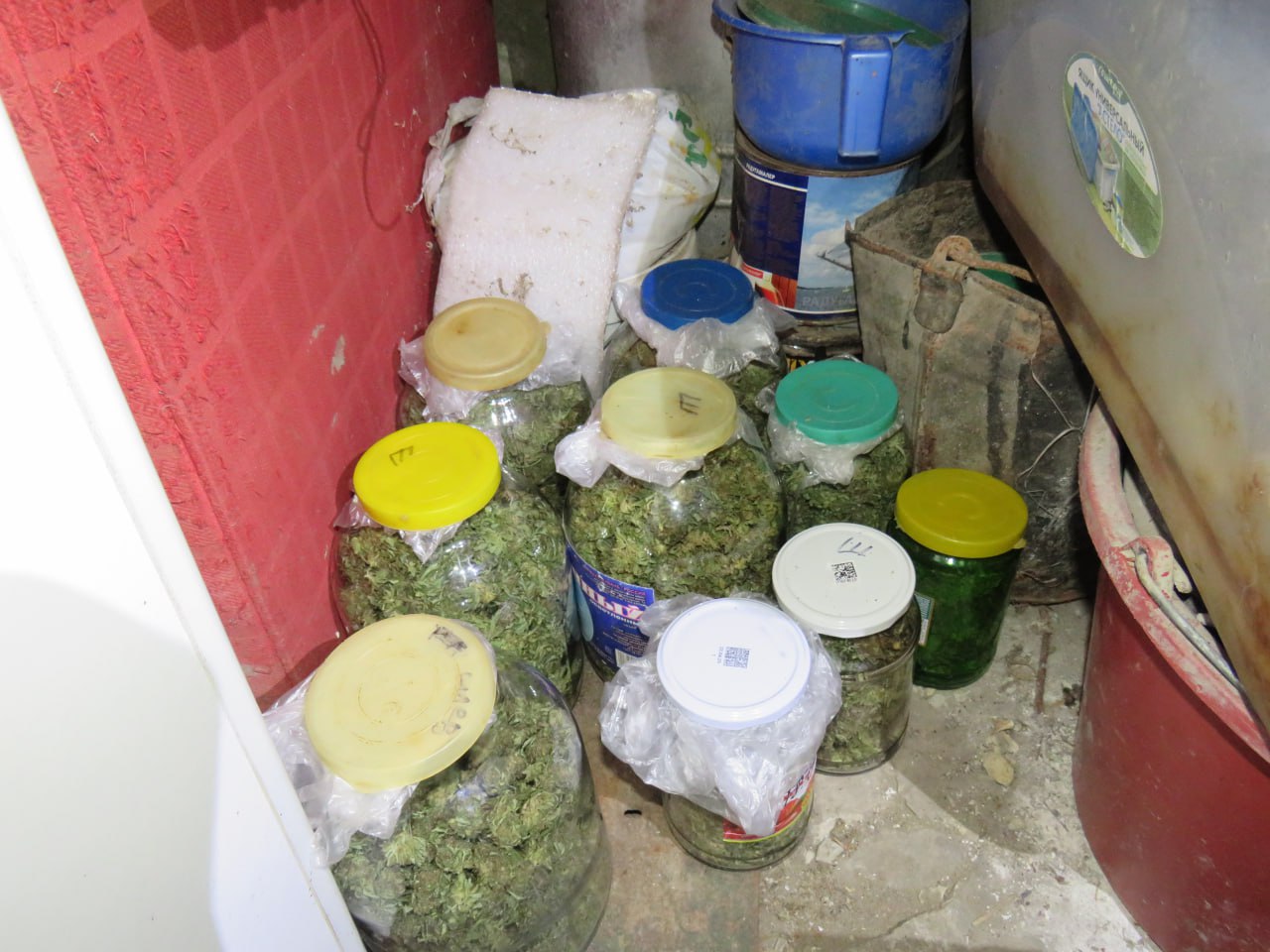 Из нелегального урожая мужчина изготовил марихуану, разложил по стеклянным банкам и хранил для личного употребления. Оперативники изъяли у мужчины более 1 кг наркотика.
