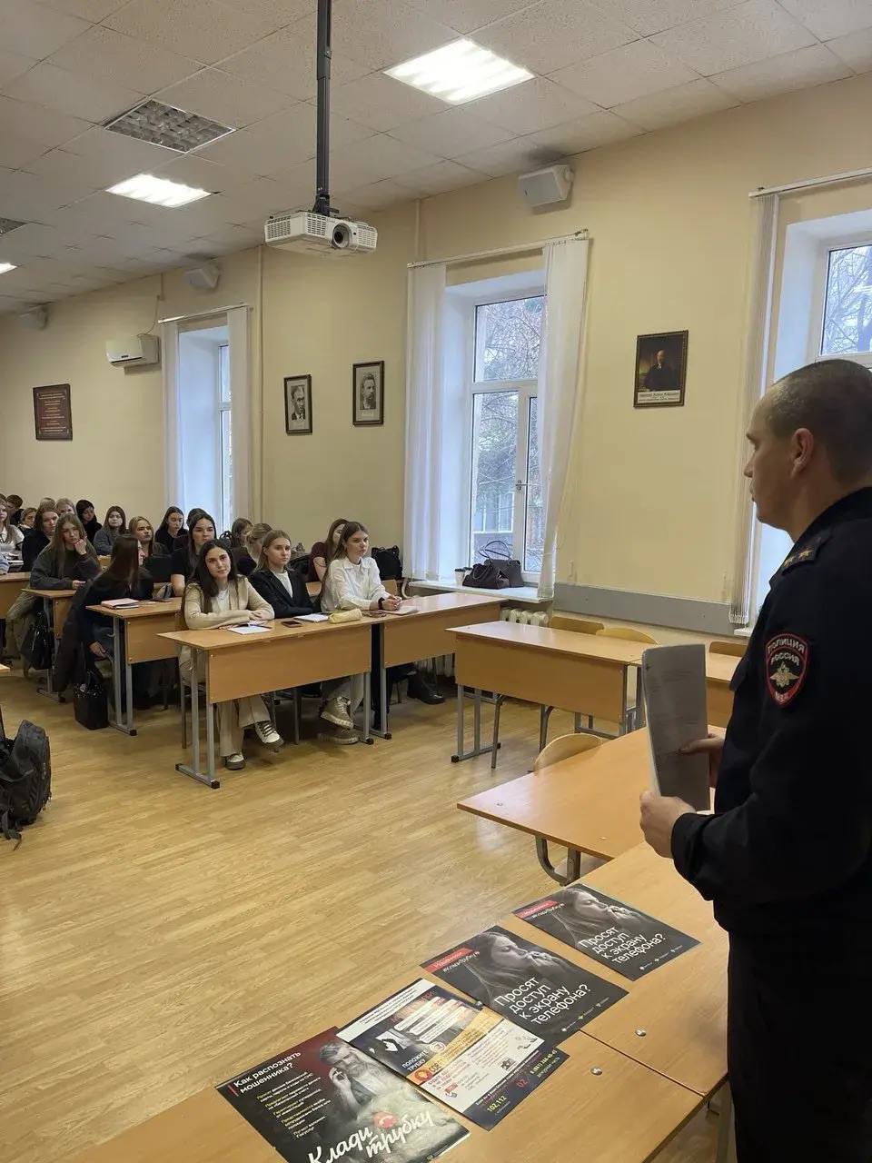 В ходе беседы были подробно рассмотрены современные схемы обмана, в которые все чаще вовлекают молодежь. Полицейский довел до присутствующих информацию об участившихся случаях дистанционного мошенничества, раздал будущим юристам профилактические памятки и буклеты, содержащие необходимую информацию о видах и способах обмана населения аферистами, зачастую представляющимися сотрудниками банковских учреждений, правоохранительных органов, а также лицами, предлагающими различные онлайн-услуги или товары.