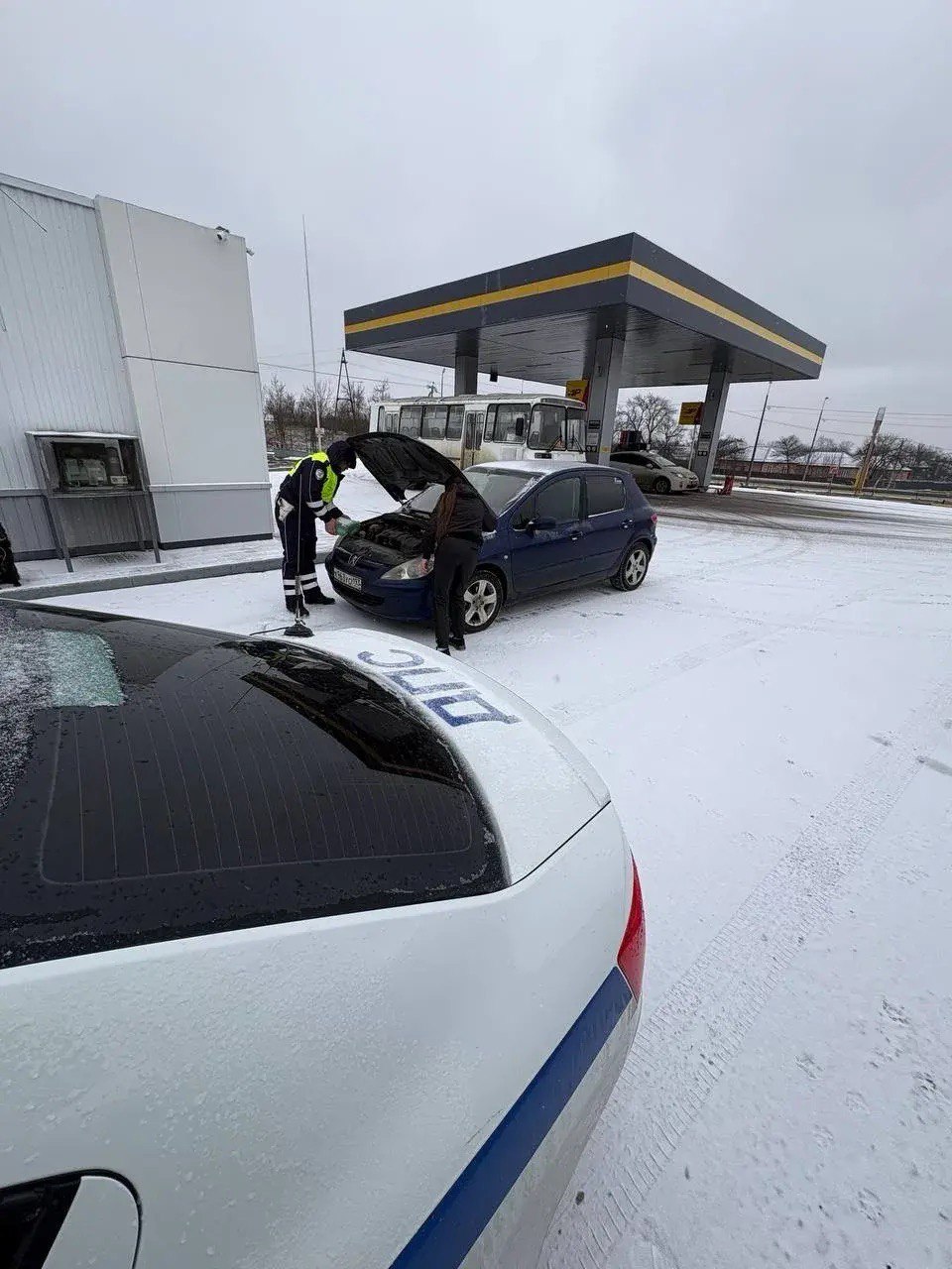 На 47 км ФАД А-146 «Краснодар-Верхнебаканский», наряд ДПС в составе старшего лейтенанта полиции Хорика Гаспаряна и старшего лейтенанта полиции Василия Понамарева, заметил стоящее на обочине транспортное средство «Peugeot». За рулем иномарки сидела женщина, которая пояснила, что в условиях снегопада не может продолжить движение, так как в бачке омывателя лобового стекла закончилась незамерзающая жидкость и дворники примерзли к лобовому стеклу.