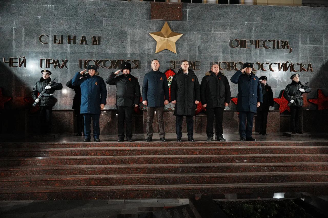 В Новороссийске сегодня ночью учатники памятной акции возложили цветы к мемориалу «Малая земля» и почтили память героев-малоземельцев.