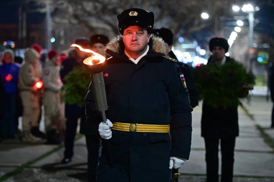 Колонна во главе с почётными гостями проследовала к мемориальному комплексу «Малая земля». Центральным элементом акции стал торжественный ритуал спуска на воды Цемесской бухты бескозырки — символа памяти о павших моряках-десантниках. Завершилась церемония минутой молчания под тёплый свет памятных свечей, символизирующих преемственность поколений и вечную благодарность.
