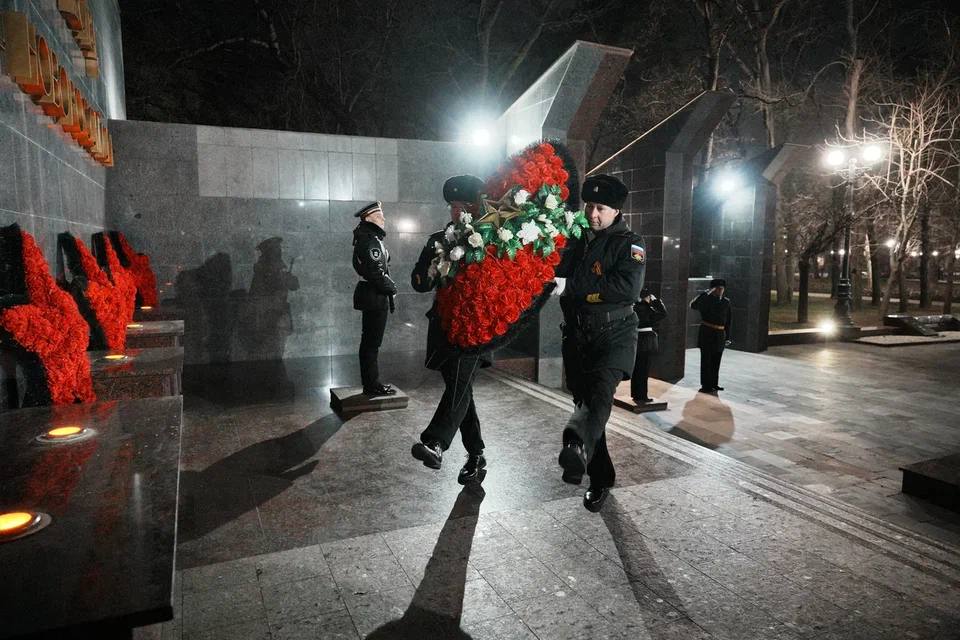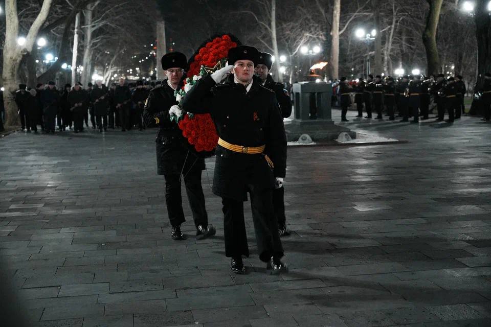Торжества начались на Площади Героев, где представители администрации Краснодарского края, депутатского корпуса, командования Новороссийского гарнизона, ветераны, общественные организации, юнармейцы и жители города возложили цветы к мемориалам в знак благодарности подвигу защитников Отечества.