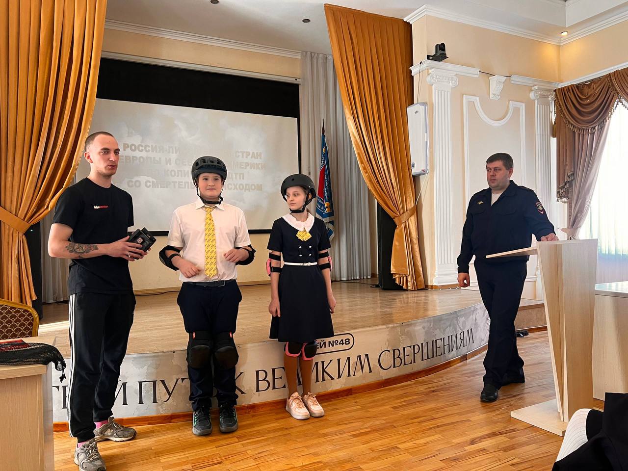 В МАОУ лицее № 48 имени А.В. Суворова сотрудники Госавтоинспекции Краснодара совместно с Общественной палатой Краснодарского края и Байк центром провели профилактическое мероприятие в формате лекциибеседы на тему «Безопасность детей на дорогах».
