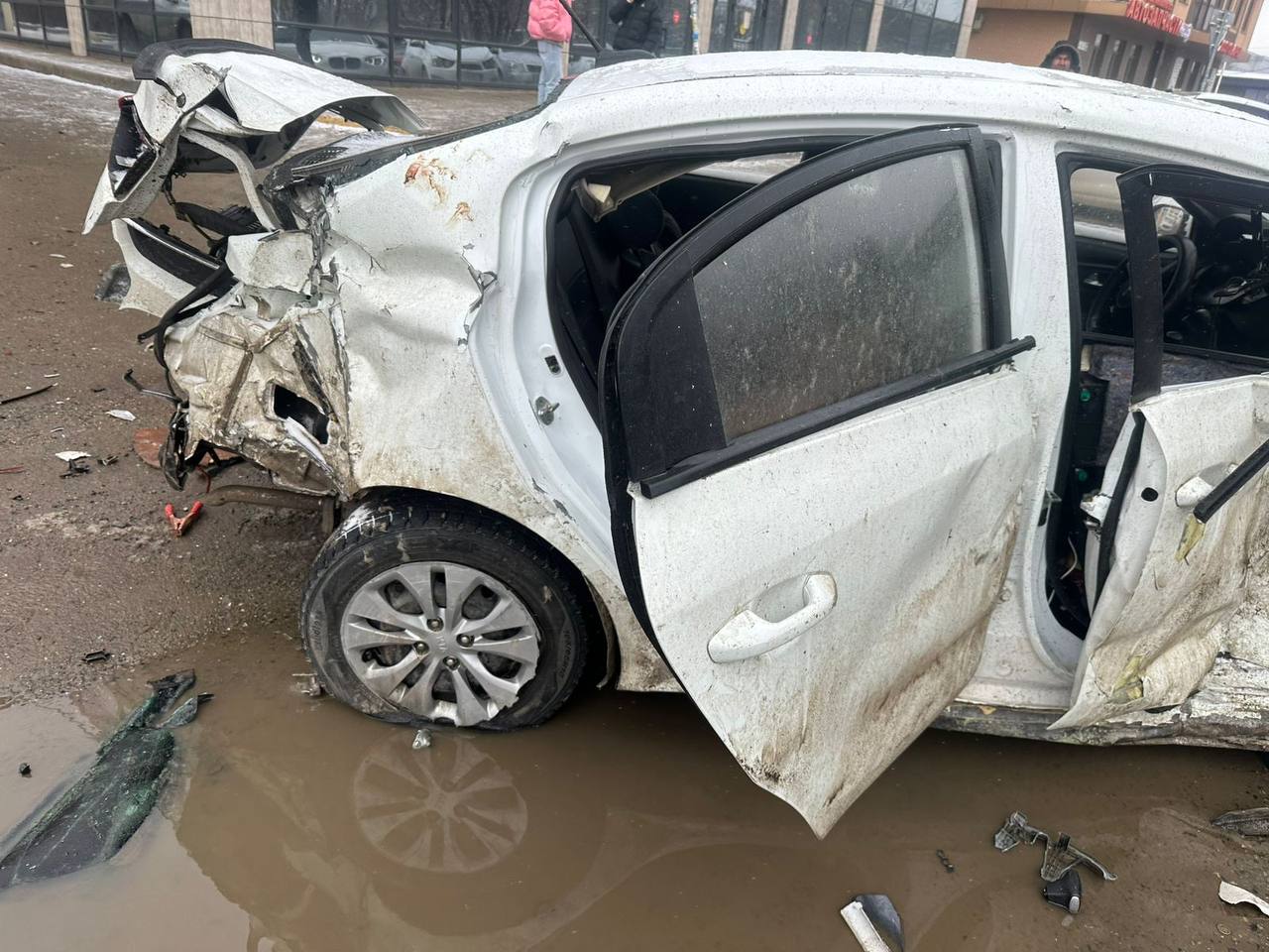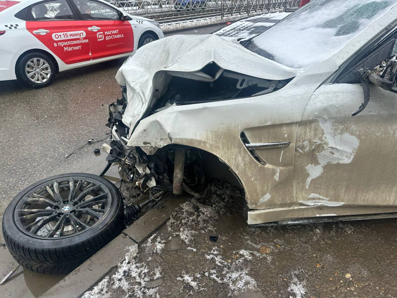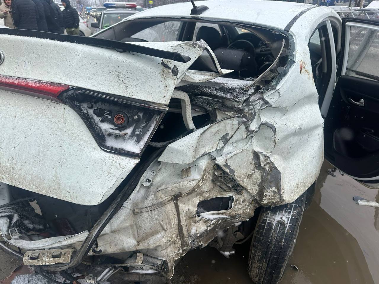 При столкновении последний изменил траекторию движения, наехал на препятствие в виде бордюрного камня, опоры для дорожных знаков, а затем на припаркованный "Хендай".