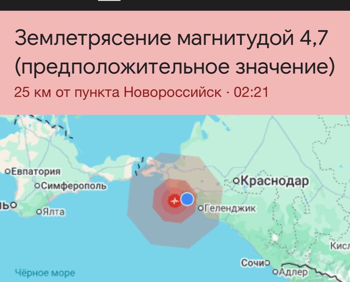 По данным сервисов, отслеживающих сейсмособытия, это было землетрясение магнитудой 4,7 баллов.Мэр Новороссийска Андрей Кравченко сообщил: «В ЕДДС от мониторинговых центров поступила информация о подземных толчках. Они зафиксированы...
