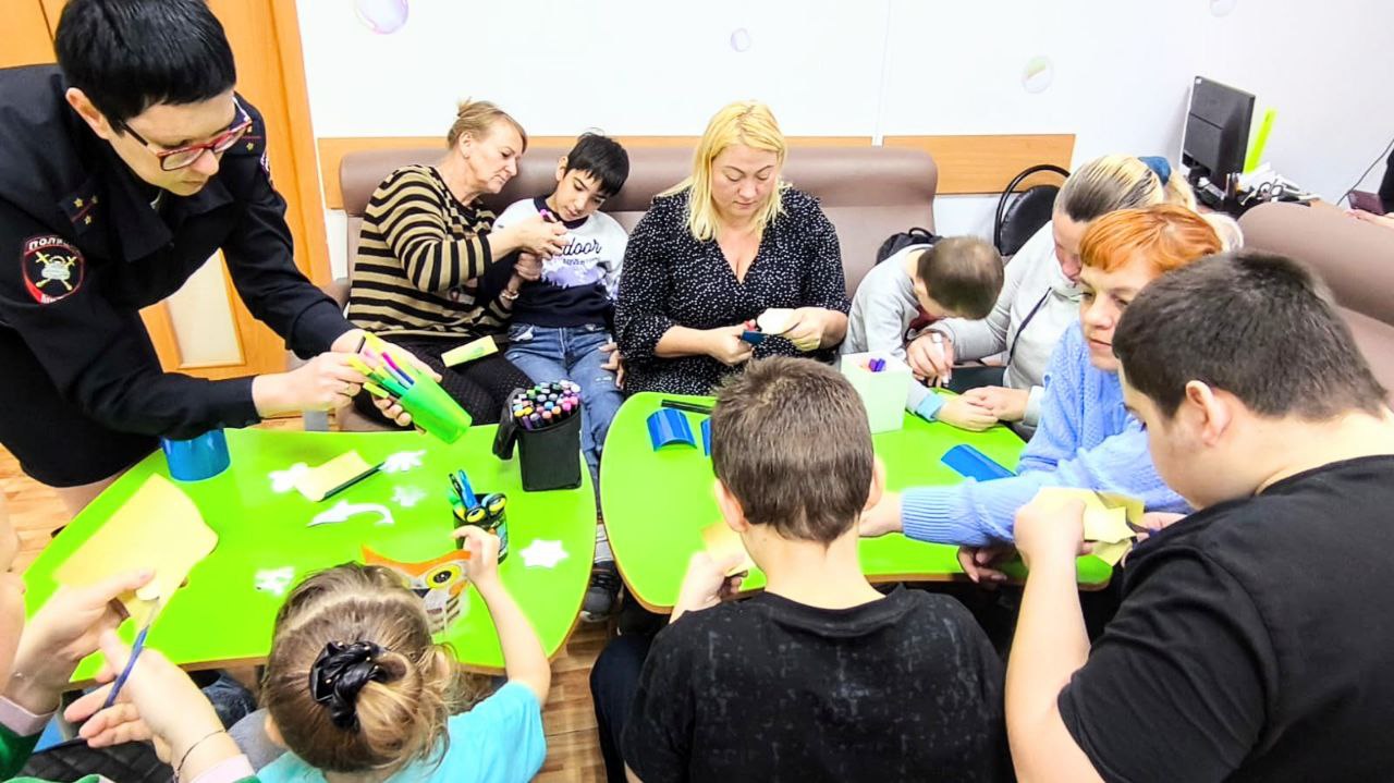 Семейный мастер-класс по изготовлению световозвращающих элементов организовали автоинспекторы Крымского района