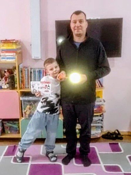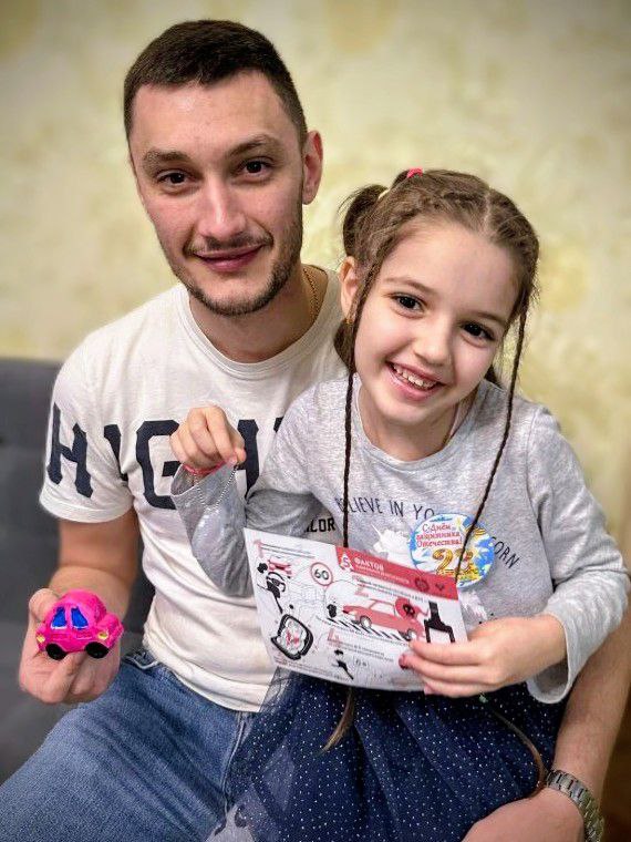ребята поздравили своих пап с наступающим праздником и вручили им в подарок машинки, памятки водителя и световозвращающие брелоки.