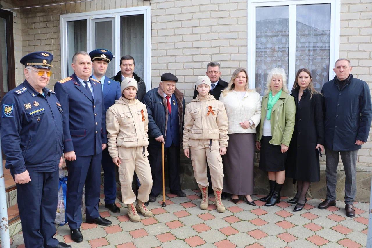 Руководитель Кропоткинского межрайонного следственного отдела СК России по Краснодарскому краю совместно с представителями администрации, силового блока и юнармейцами встретились с ветераном Великой Отечественной войны Алексеем Григорьевичем Демьяновским, поздравив с наступающим 23 февраля.