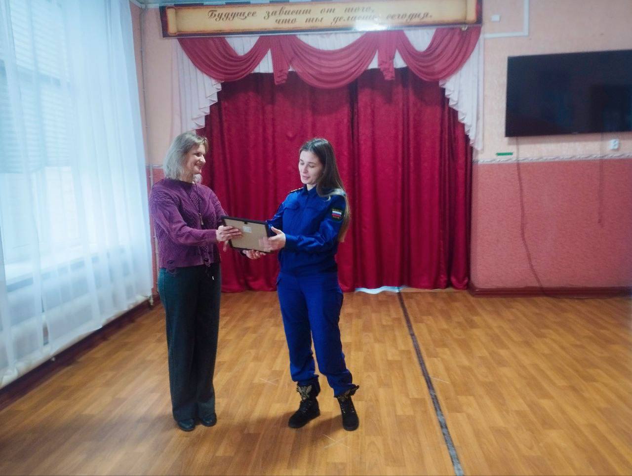 Прокурор Отрадненского района Михаил Дудченко и прокурор апелляционного отдела уголовно-судебного управления прокуратуры Краснодарского края Зарина Джагаева от коллектива прокуратуры края доставили гуманитарную помощь воспитанникам школы - интерната Луганской Народной Республики